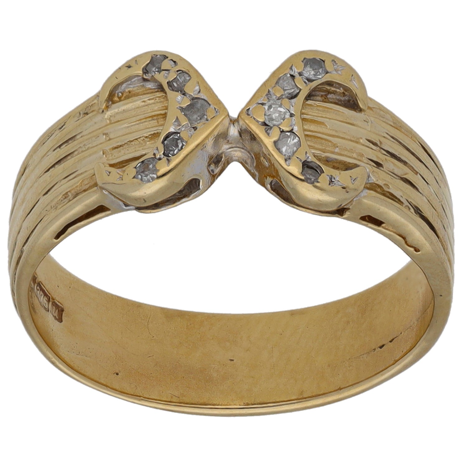 9ct Gold 0.05ct Diamond Buckle Ring Size M
