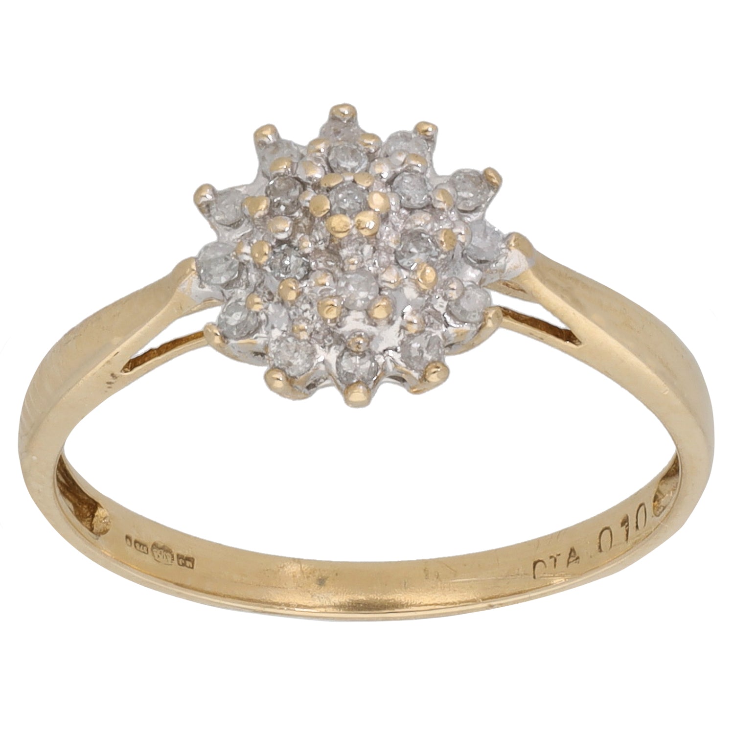 9ct Gold 0.10ct Diamond Cluster Ring Size L
