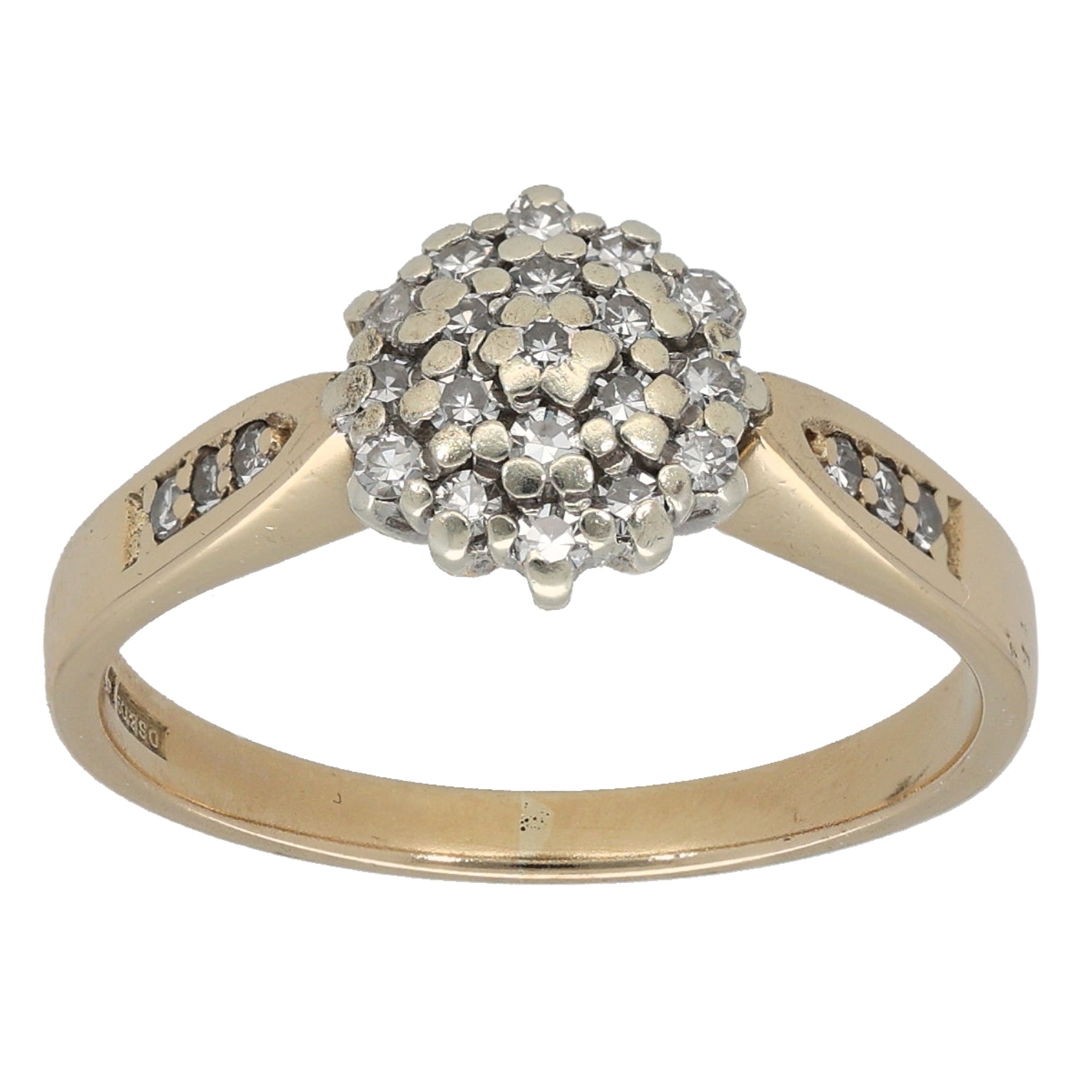 9ct Gold 0.25ct Diamond Cluster Ring Size M