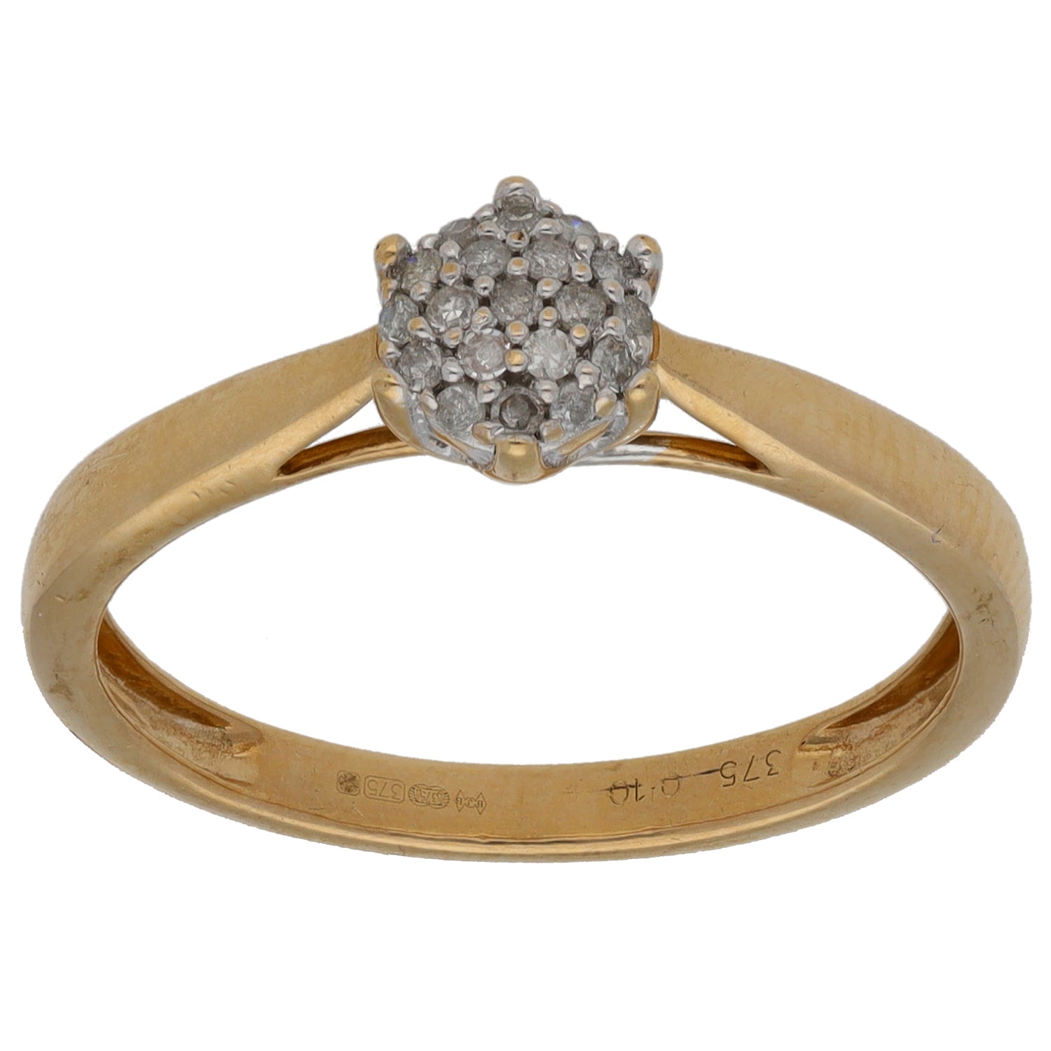 9ct Gold 0.10ct Diamond Cluster Ring Size O