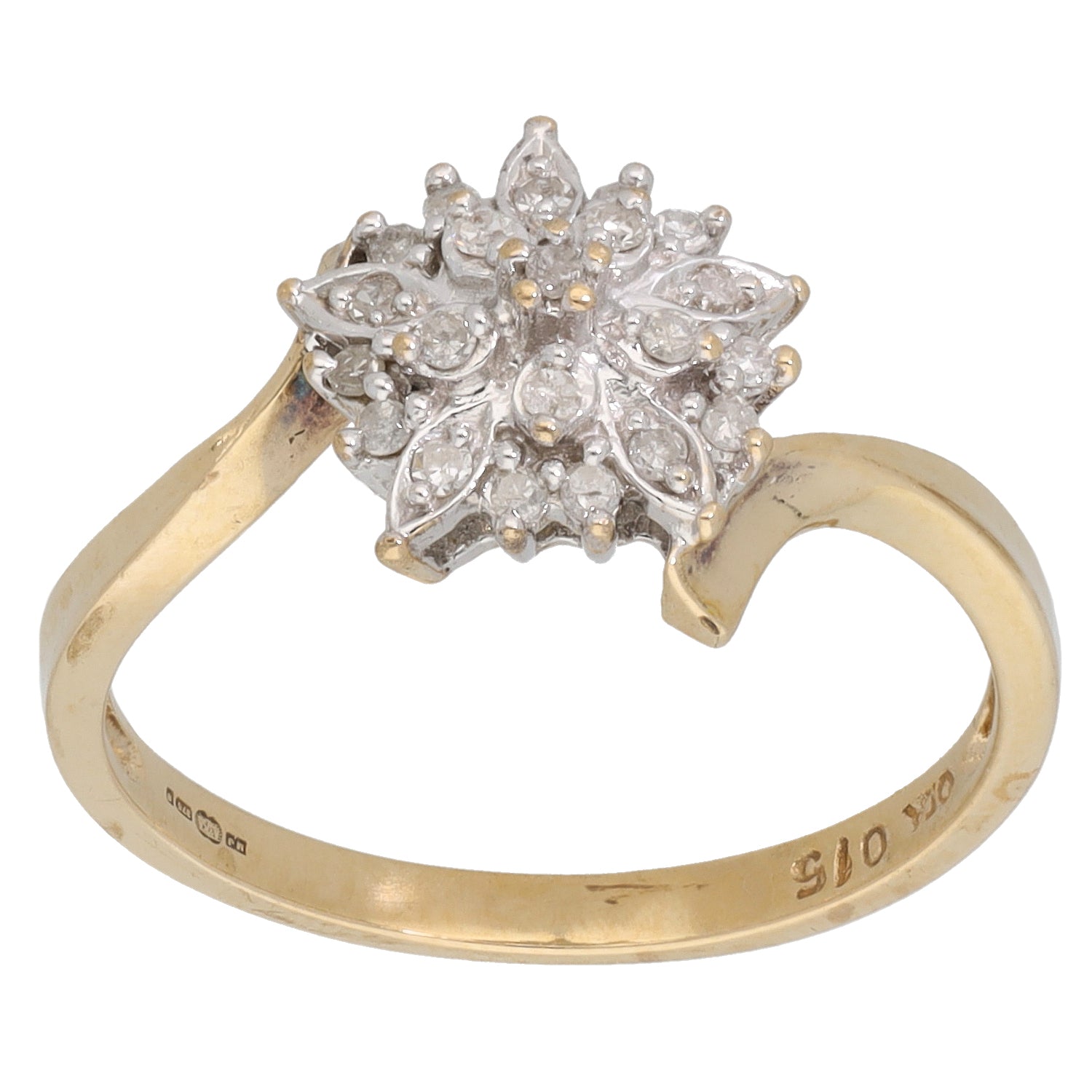 9ct Gold 0.15ct Diamond Cluster Ring Size P
