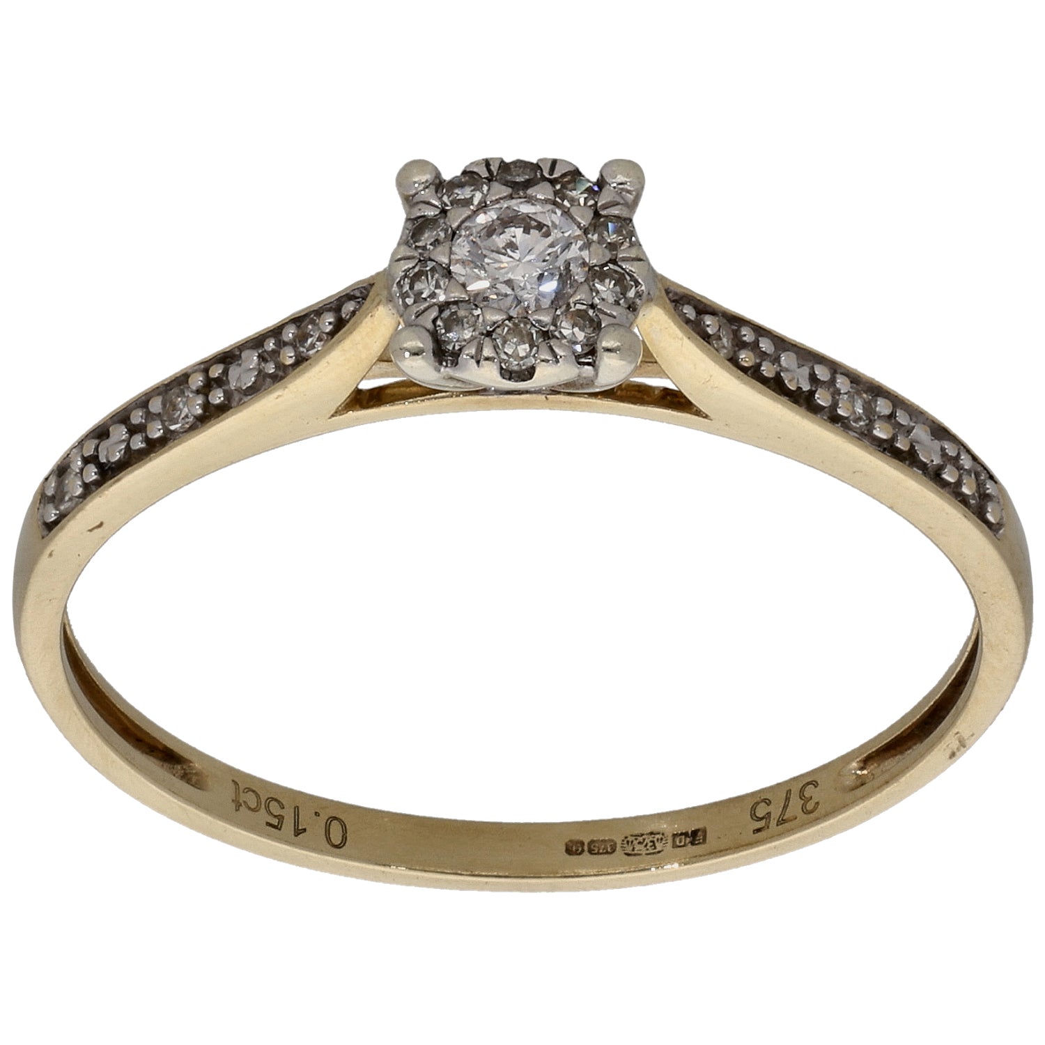 9ct Gold 0.15ct Diamond Cluster Ring Size R