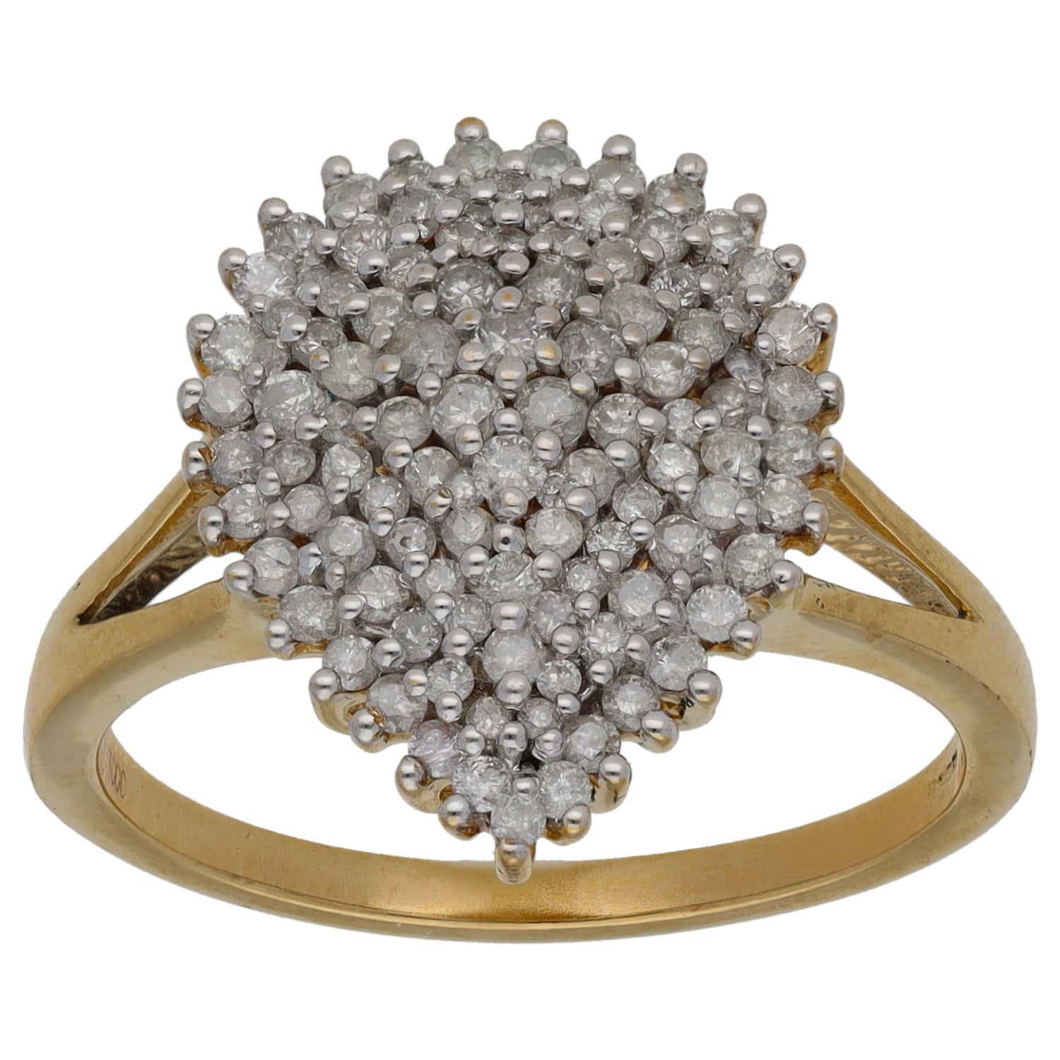 9ct Gold 1.00ct Diamond Cluster Ring Size R