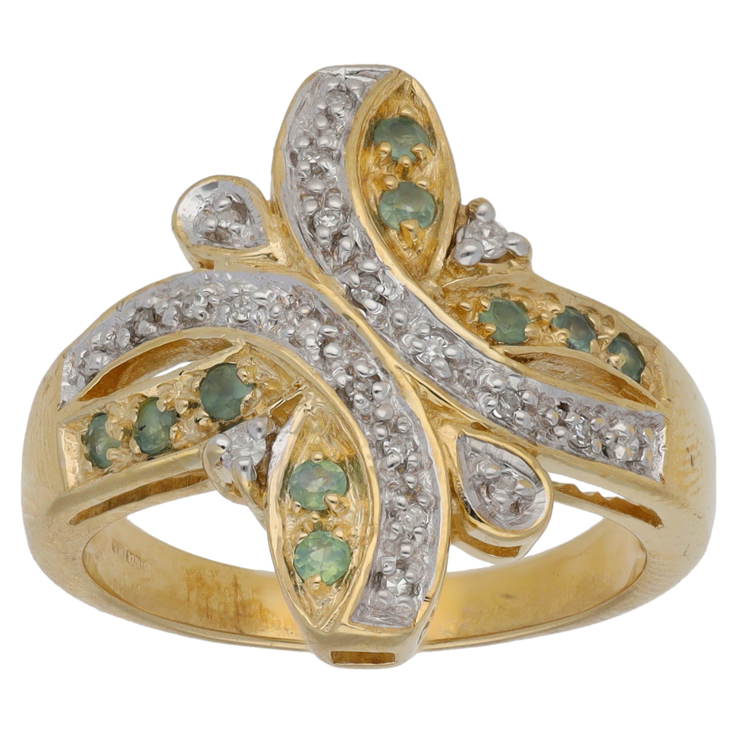 9ct Gold 0.105ct Diamond & Emerald Dress/Cocktail Ring Size N