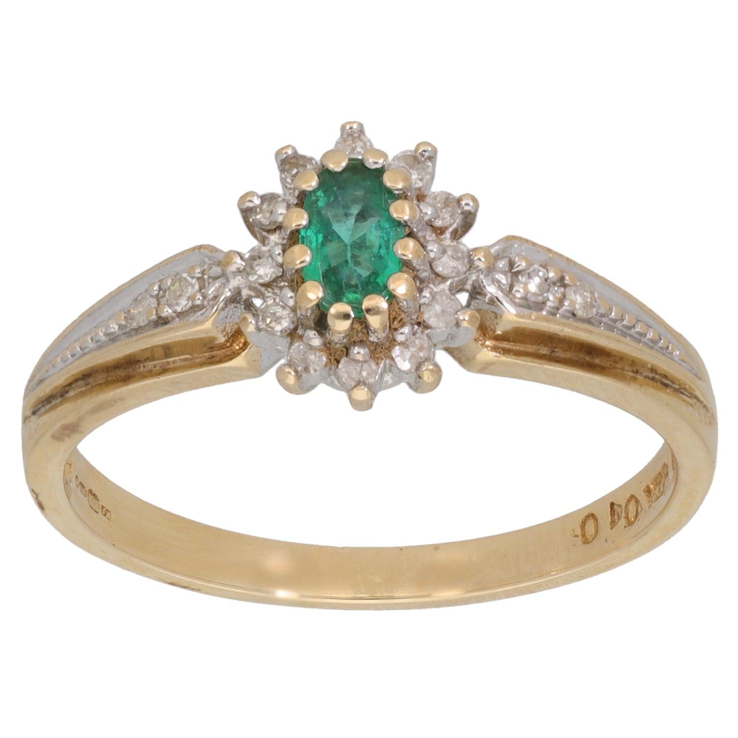9ct Gold 0.16ct Diamond & Emerald Dress/Cocktail Ring Size O