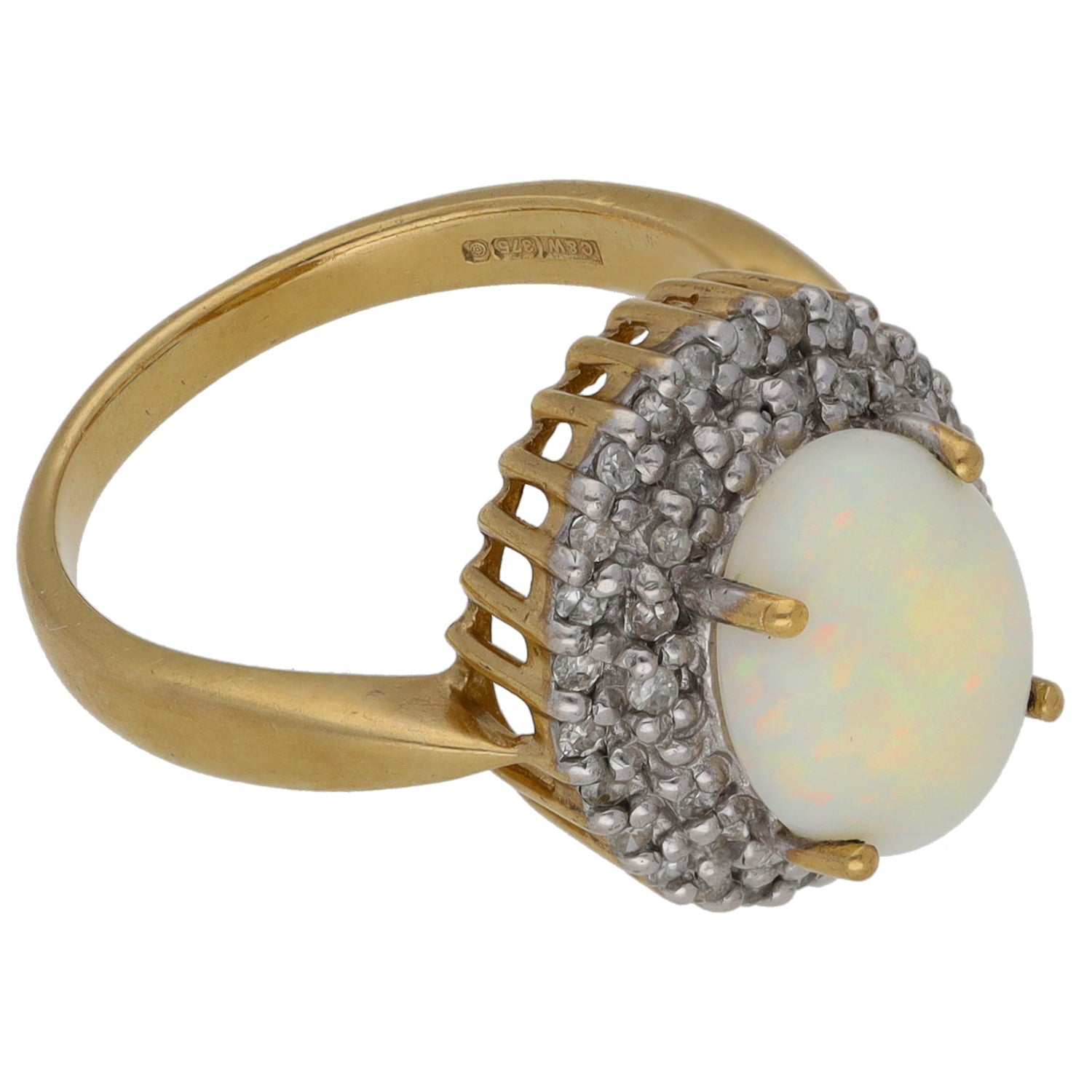 9ct Gold 0.21ct Diamond & Opal Dress/Cocktail Ring Size K
