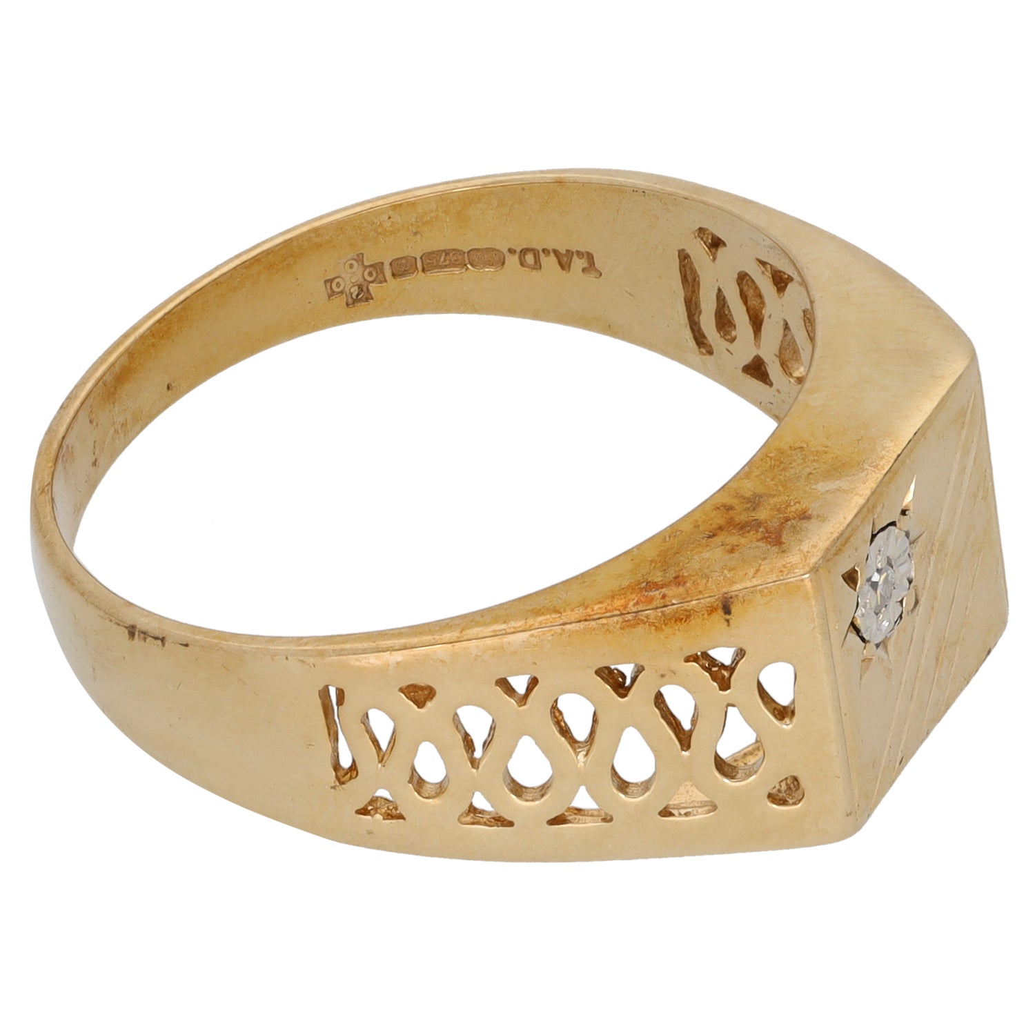 9ct Gold 0.01ct Diamond Patterned Signet Ring Size S