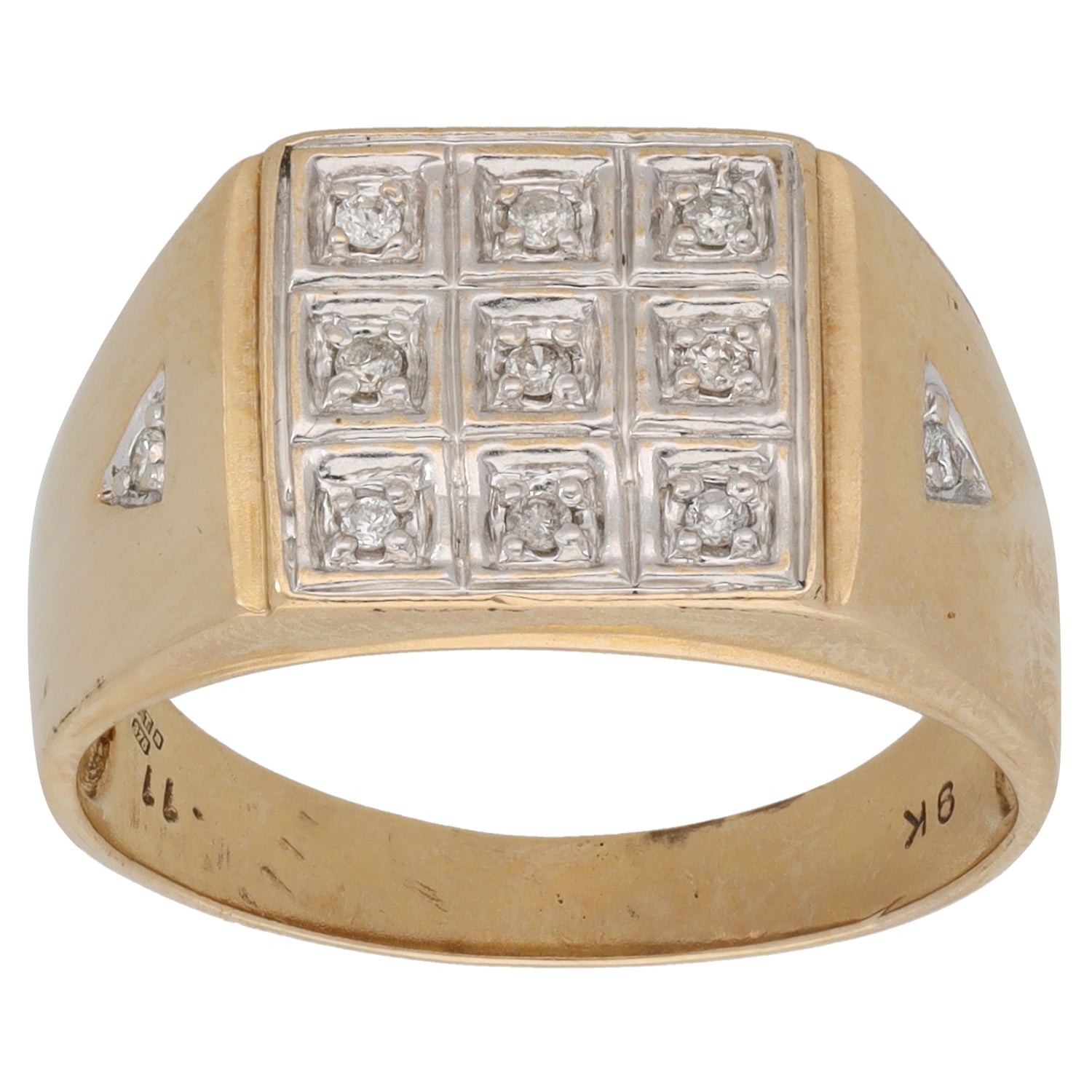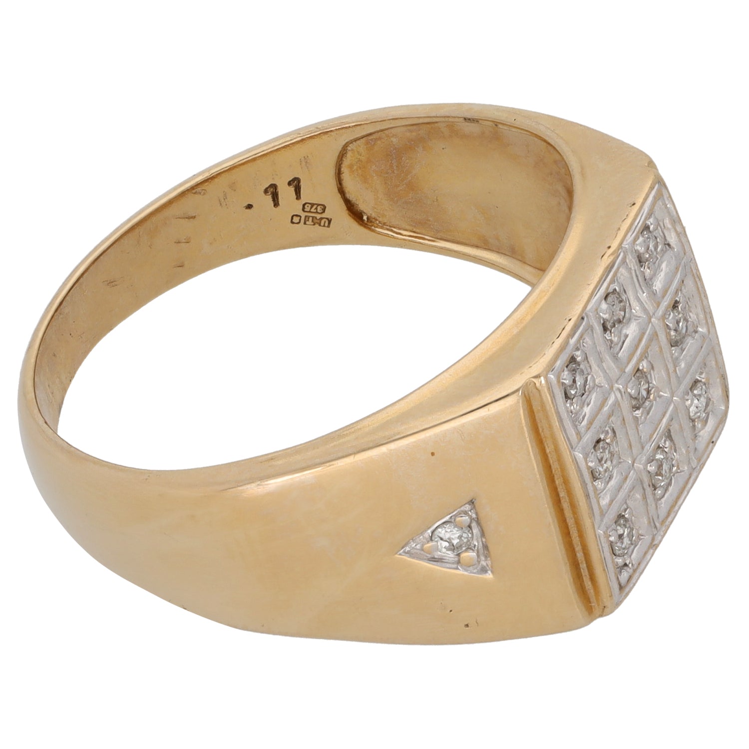 9ct Gold 0.11ct Diamond Patterned Signet Ring Size U