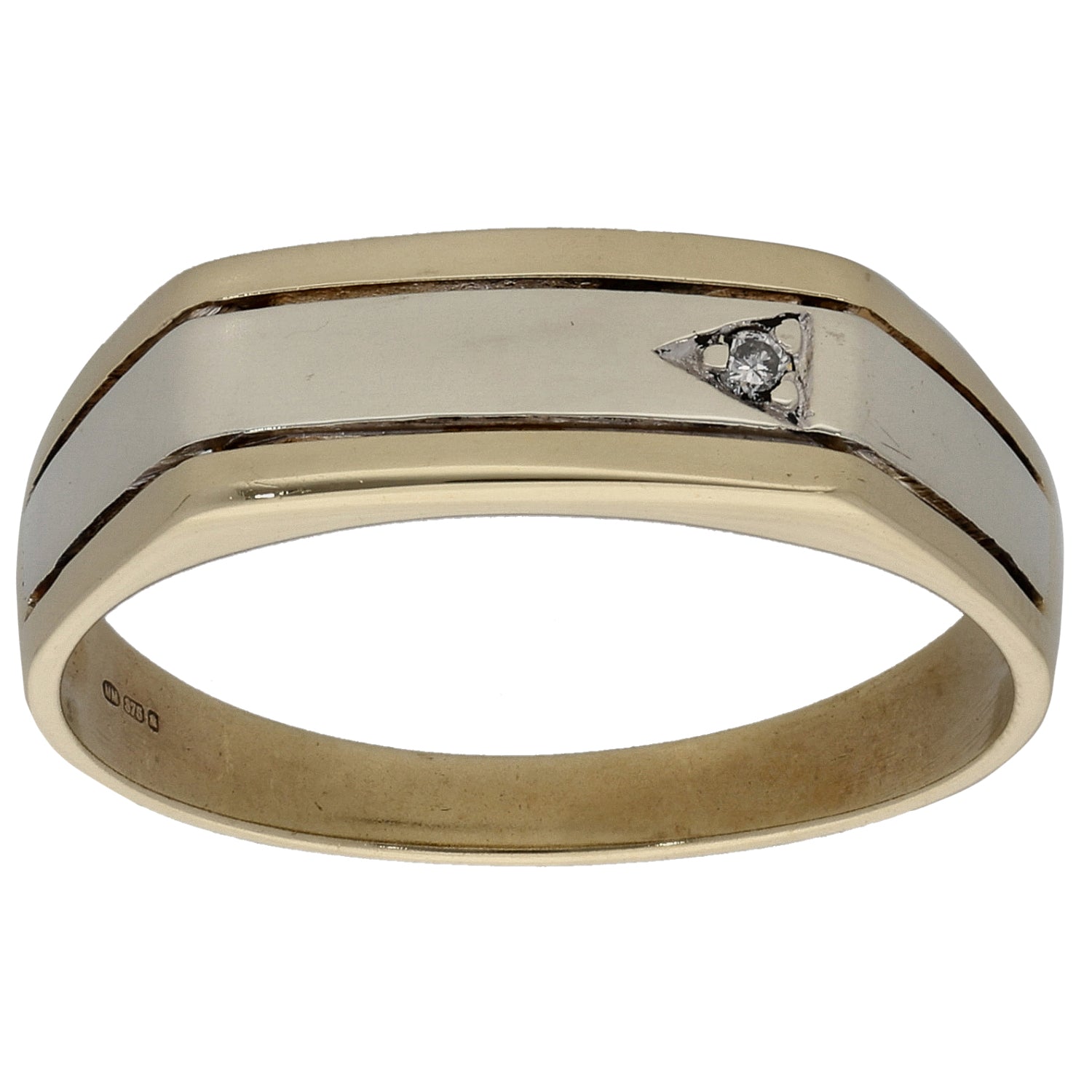 9ct Gold 0.01ct Diamond Patterned Signet Ring Size U
