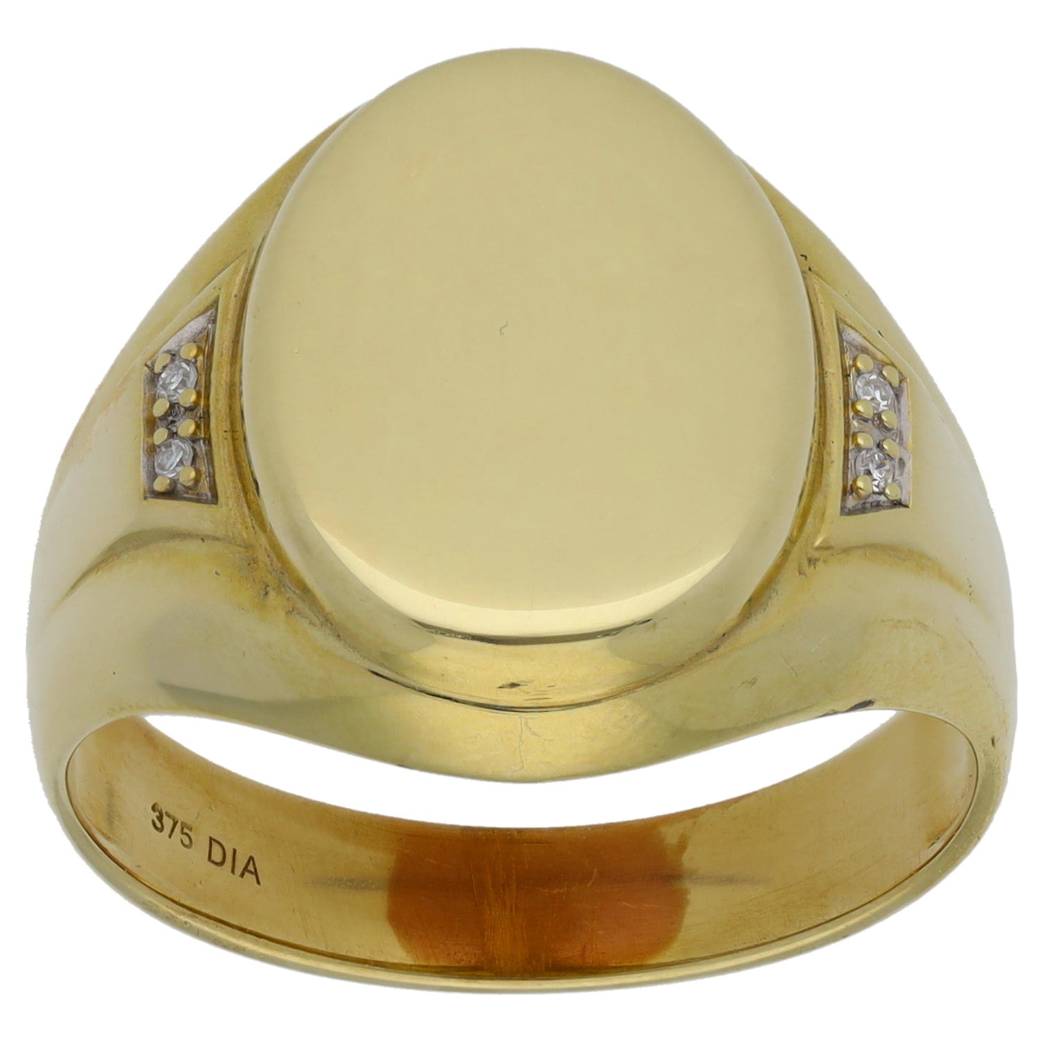 9ct Gold 0.04ct Diamond Patterned Signet Ring Size V
