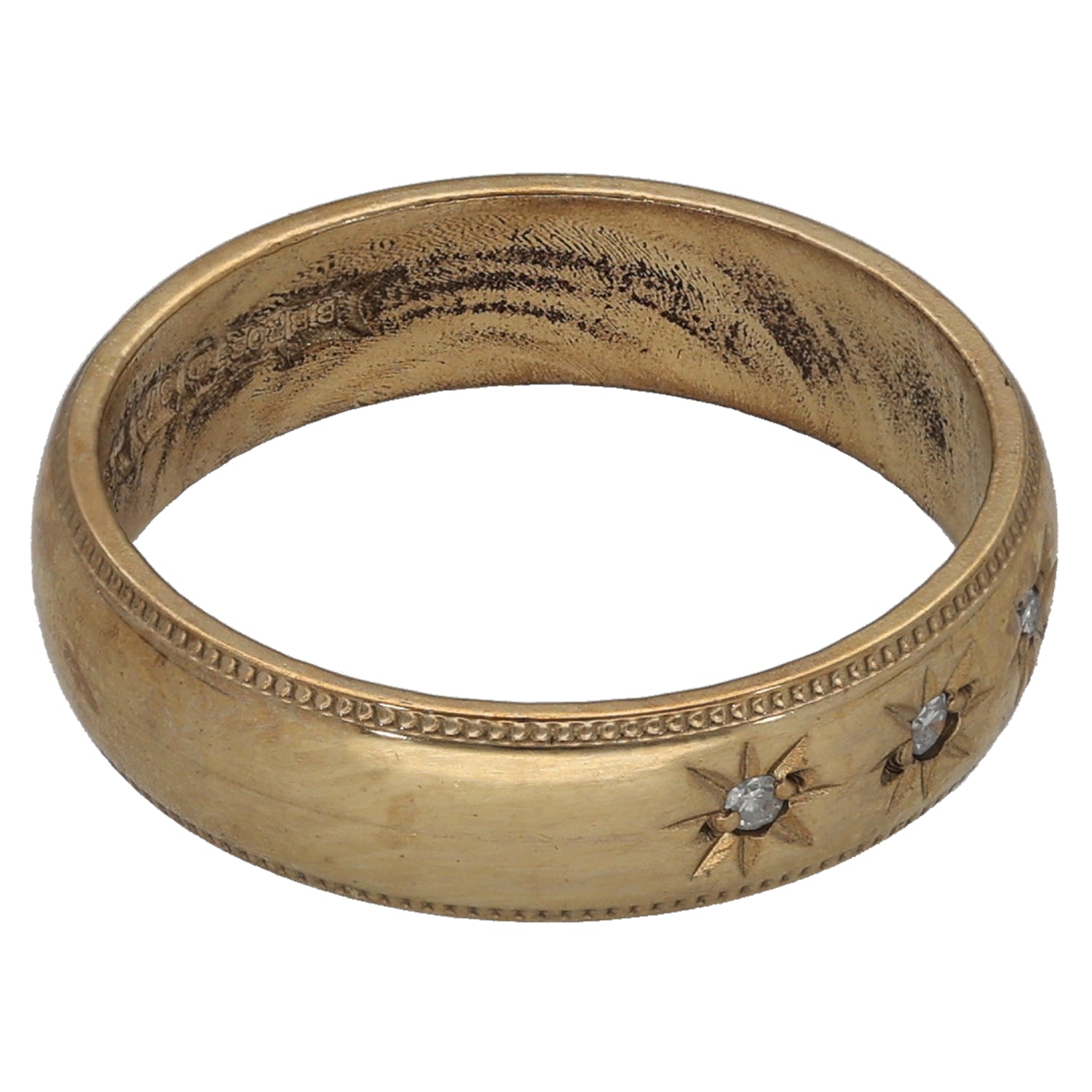 9ct Gold 0.03ct Diamond Patterned Wedding Ring Size K