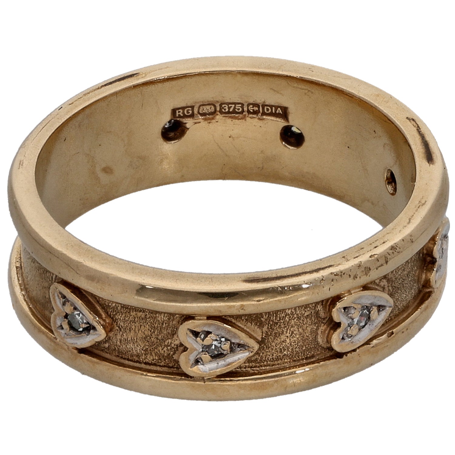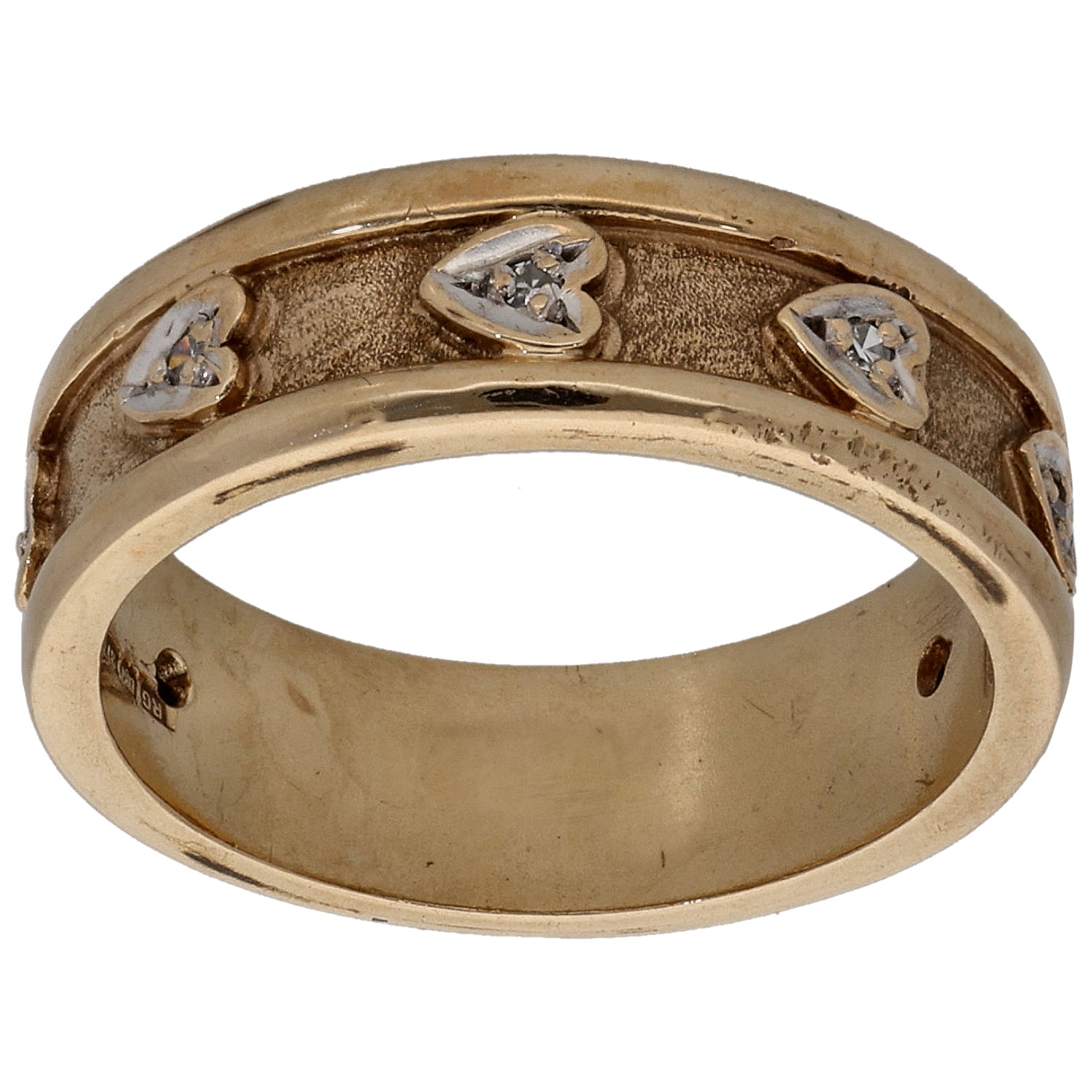 9ct Gold 0.035ct Diamond Patterned Wedding Ring Size L