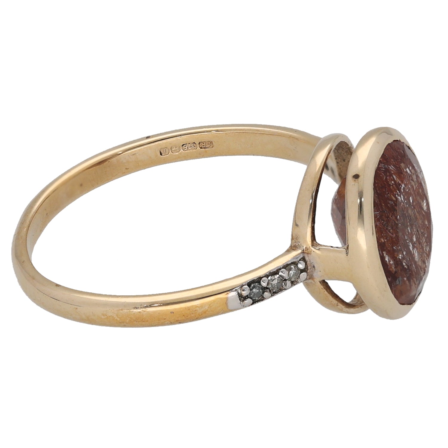 9ct Gold 0.12ct Diamond & Quartz Single Stone Ring with Accent Stones Size N
