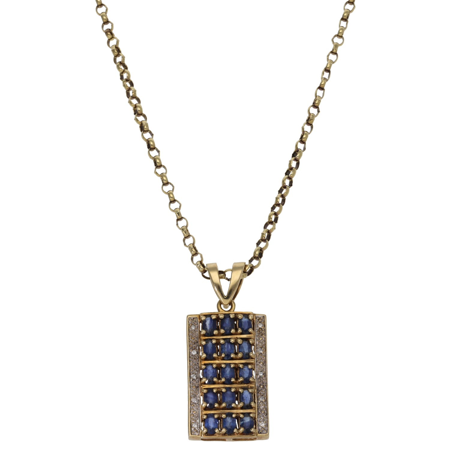 9ct Gold 0.10ct Diamond & Sapphire Dress/Cocktail Pendant With Chain