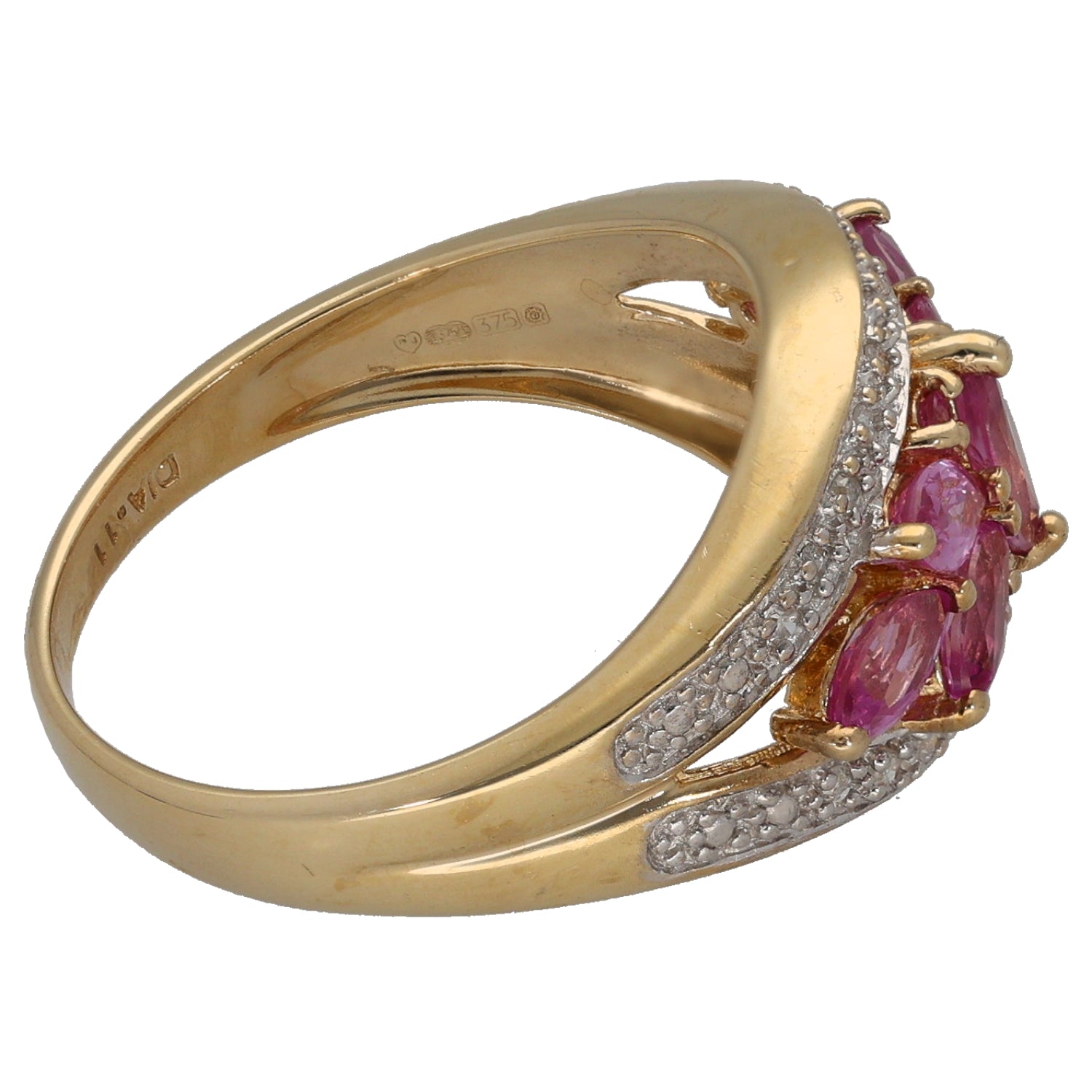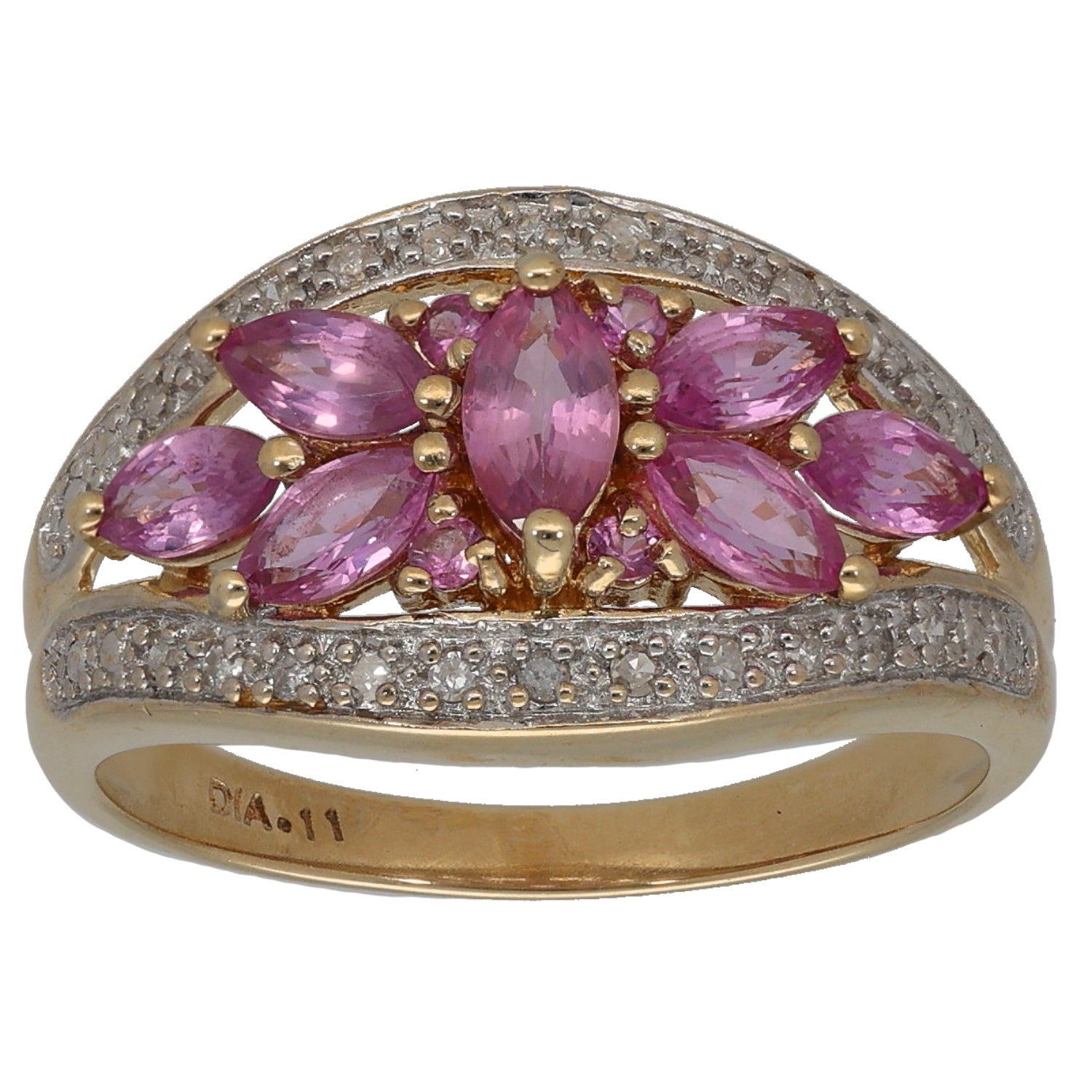 9ct Gold 0.11ct Diamond & Pink Sapphire Dress/Cocktail Ring Size P