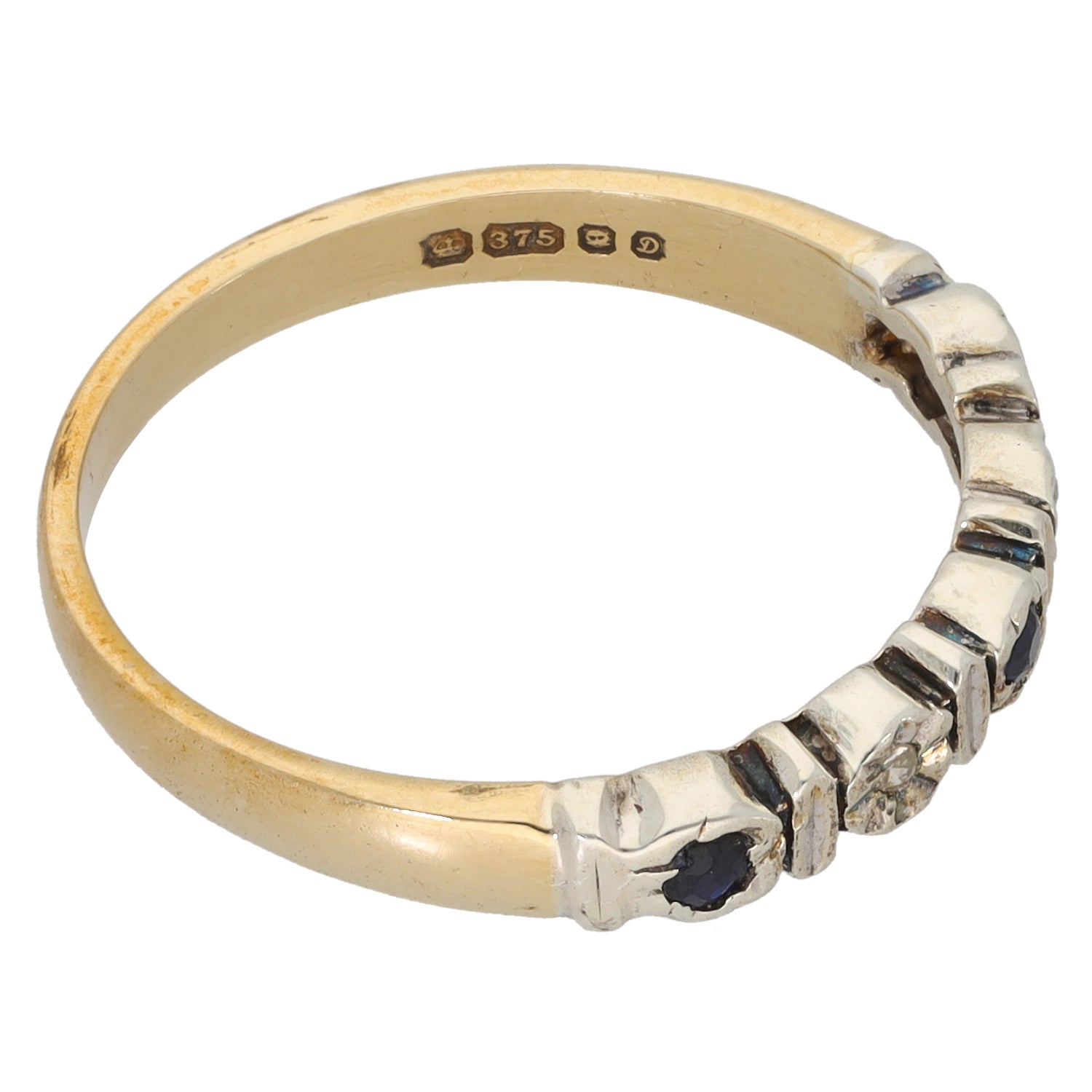 9ct Gold 0.01ct Diamond & Sapphire Half Eternity Ring Size S