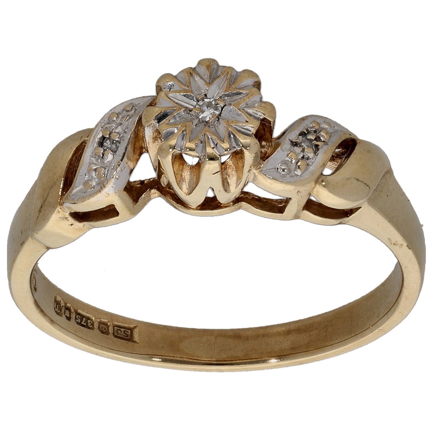 9ct Gold 0.015ct Diamond Trilogy Ring Size L