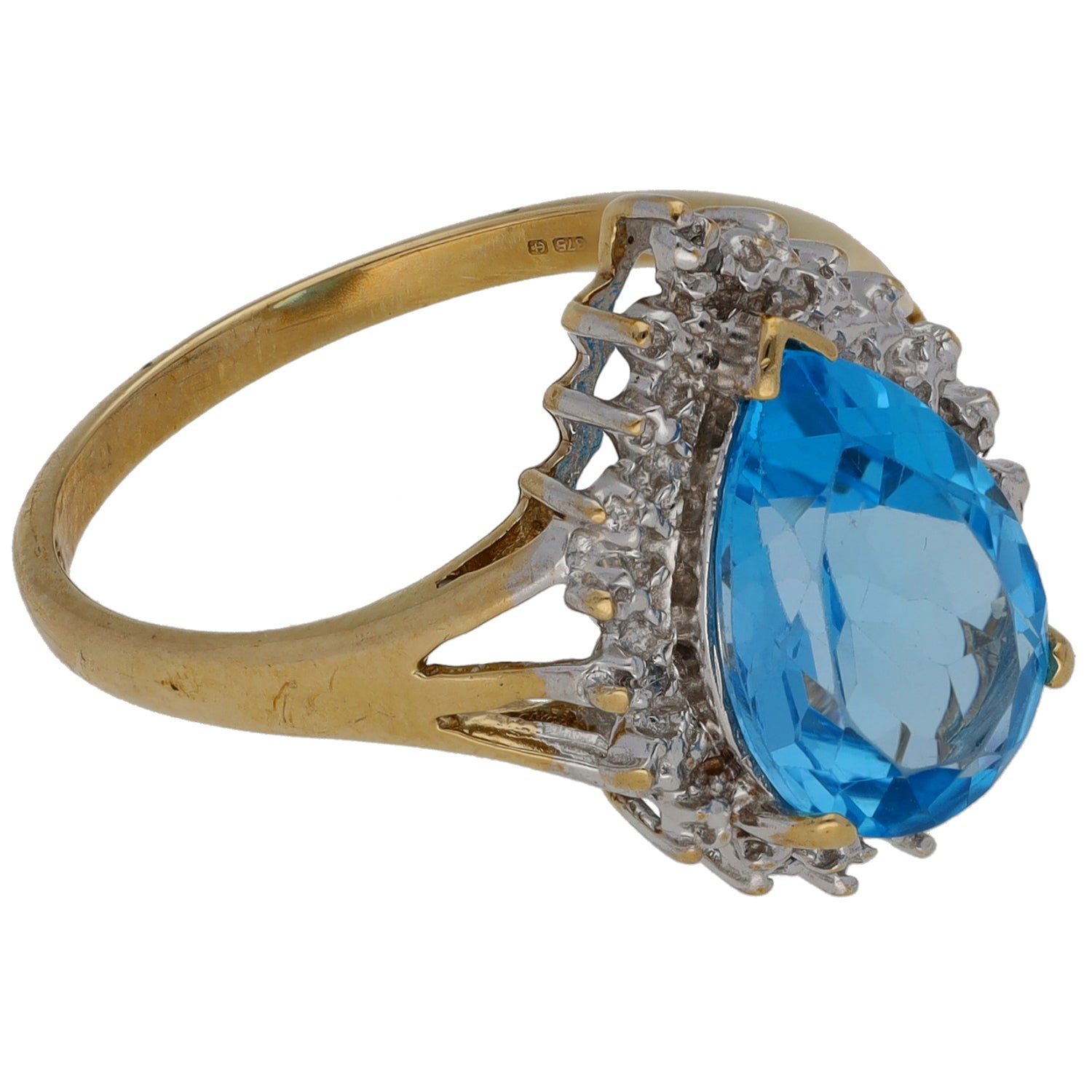 9ct Gold 0.02ct Diamond & Topaz Dress/Cocktail Ring Size P