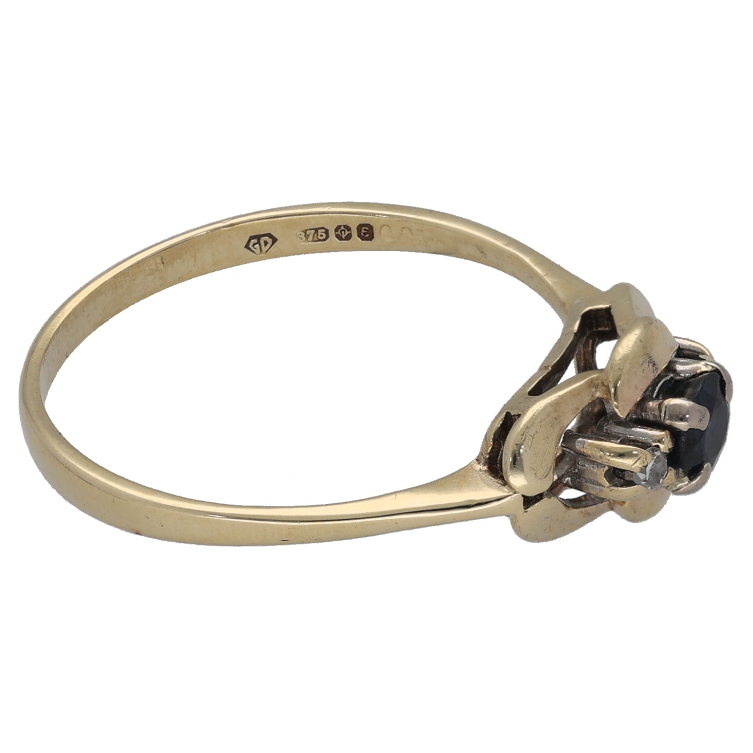 9ct Gold 0.04ct Diamond & Sapphire Trilogy Ring Size Q