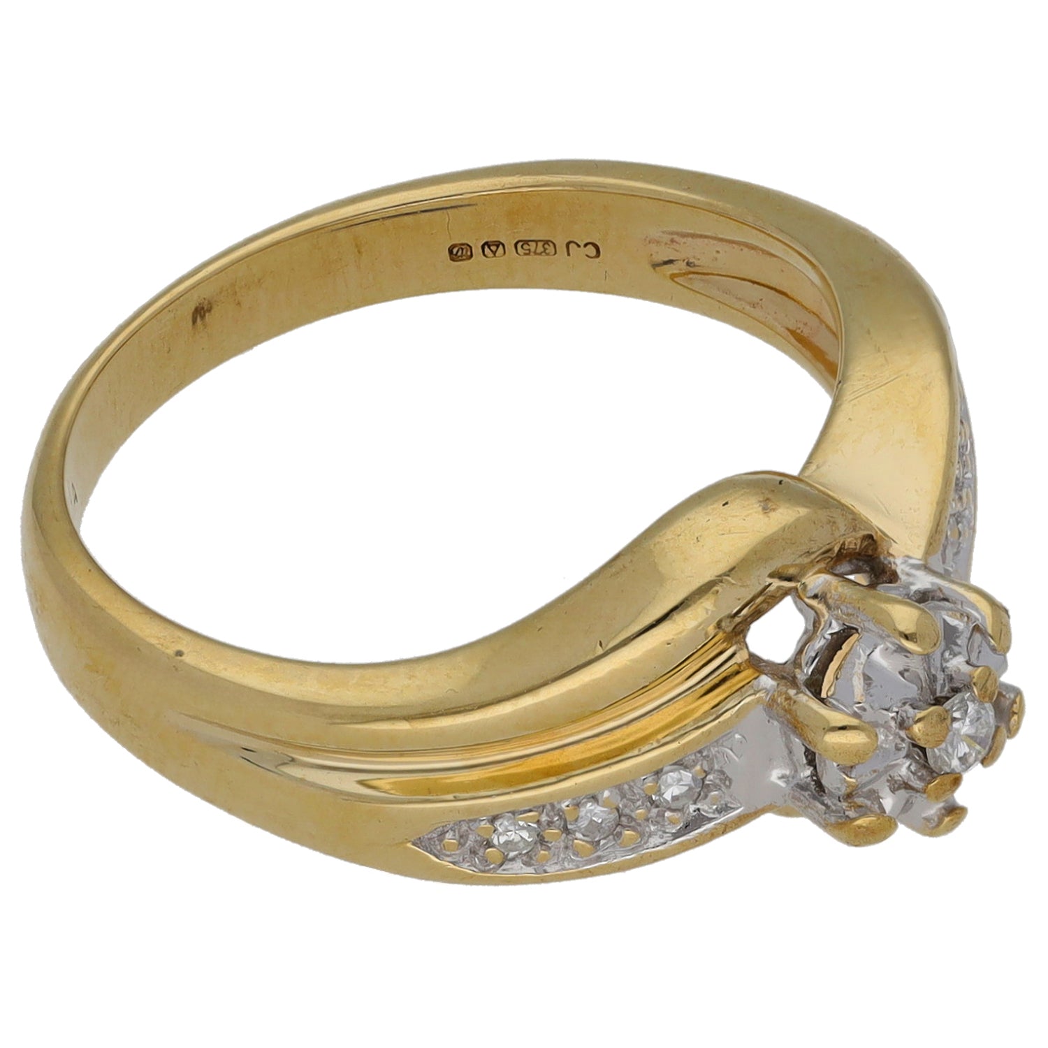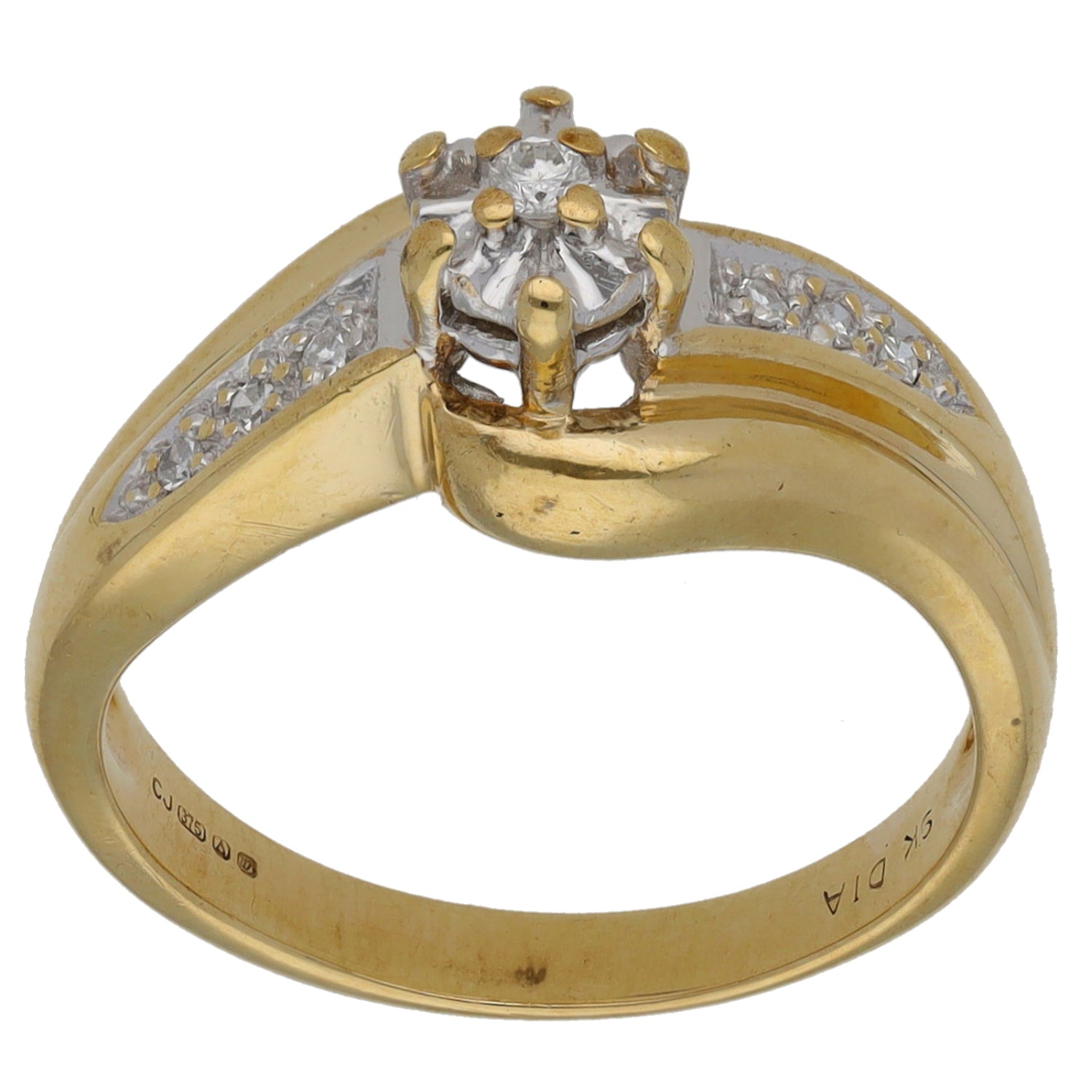 9ct Gold 0.08ct Diamond Solitaire Ring With Accent Stones Size M