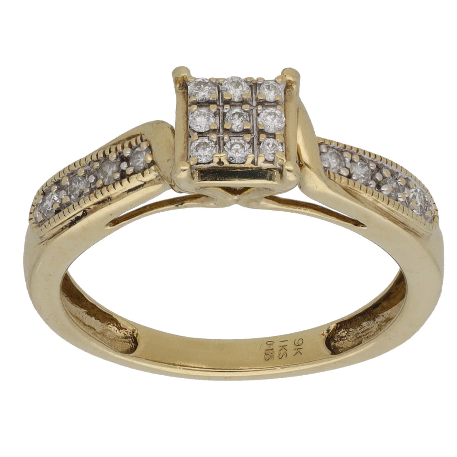 9ct Gold 0.135ct Diamond Dress/Cocktail Ring Size L