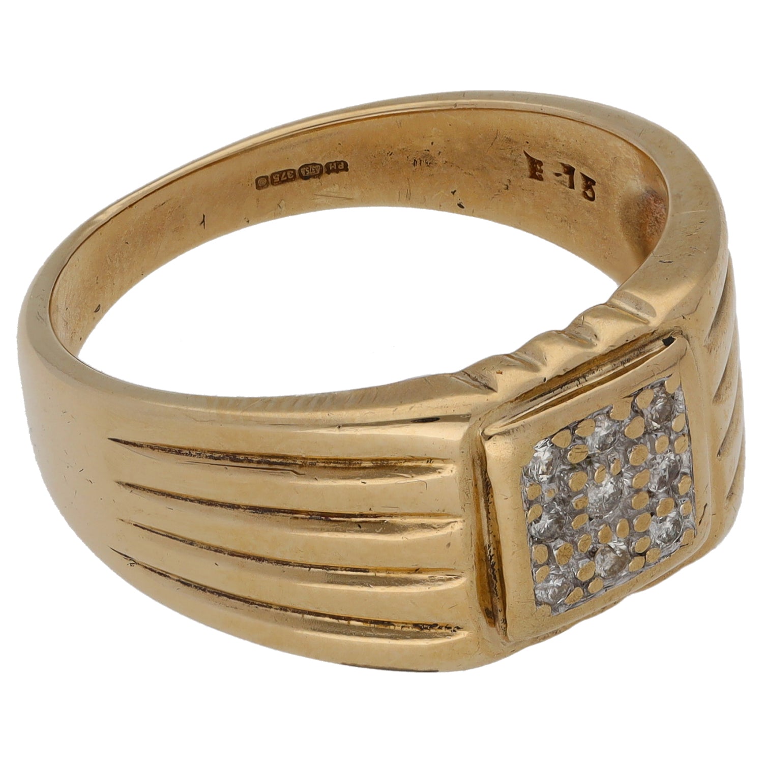 9ct Gold 0.15ct Diamond Patterned Signet Ring Size W