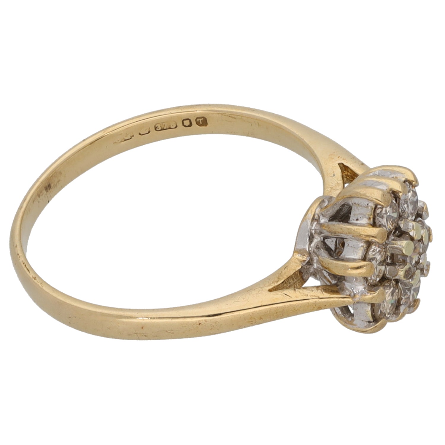 9ct Gold 0.21ct Diamond Cluster Ring Size K
