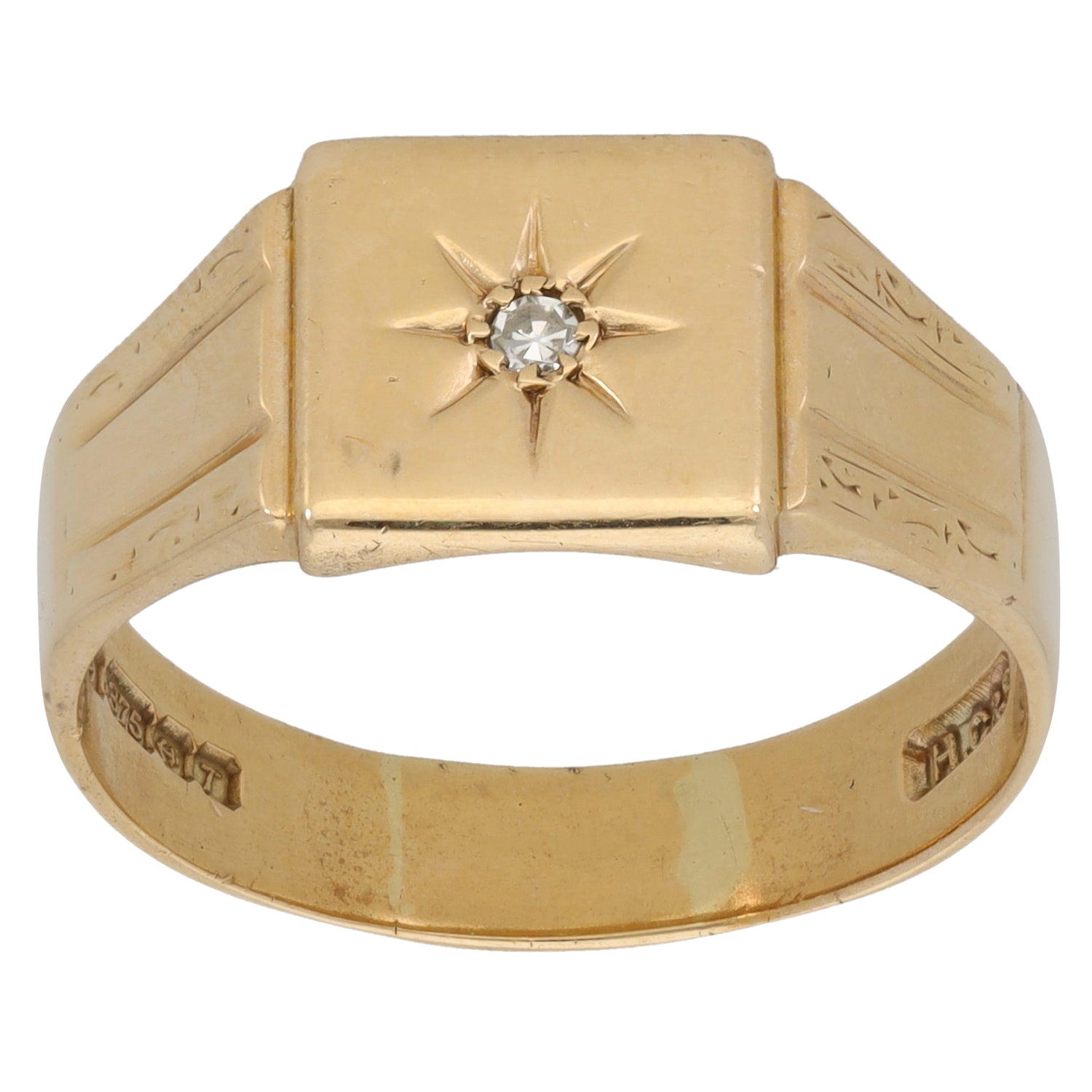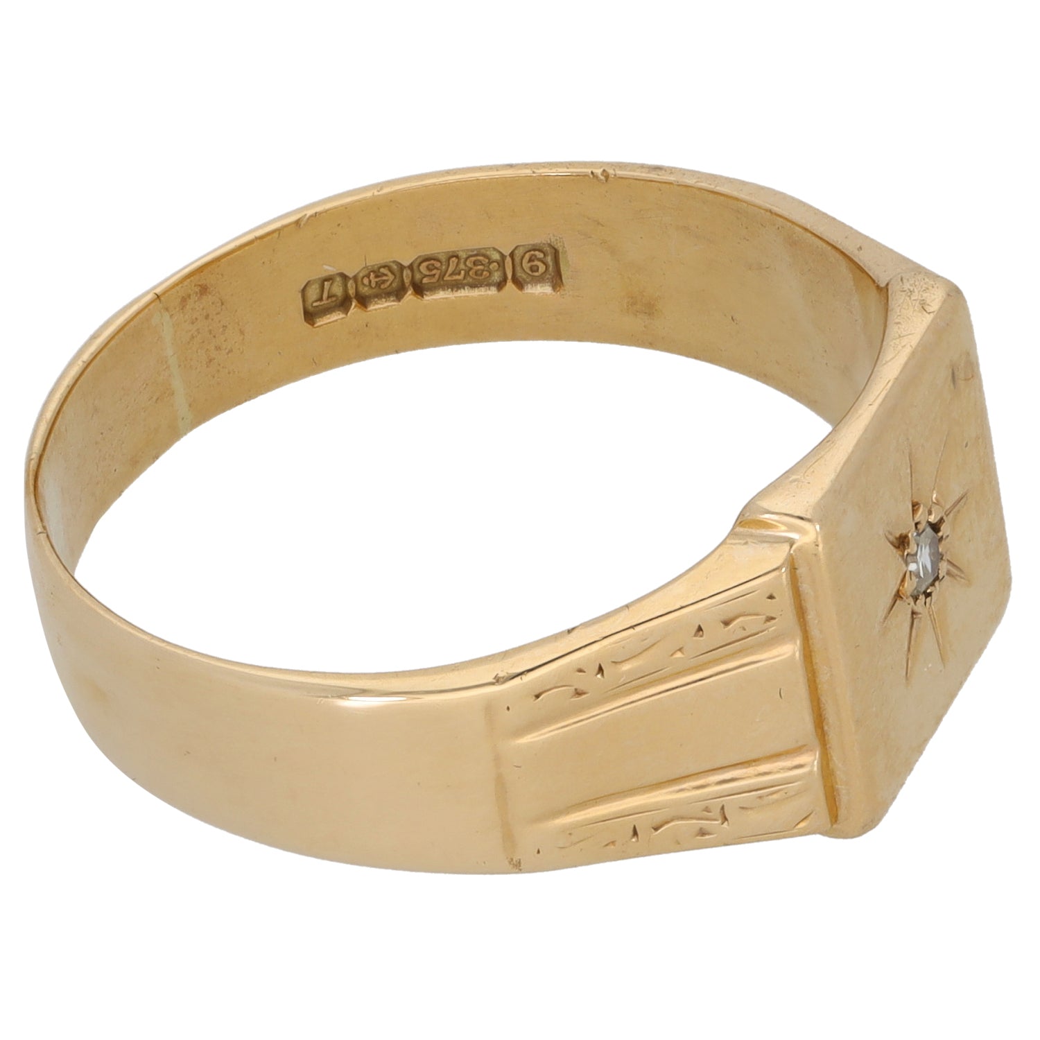 9ct Gold 0.03ct Diamond Patterned Signet Ring Size V
