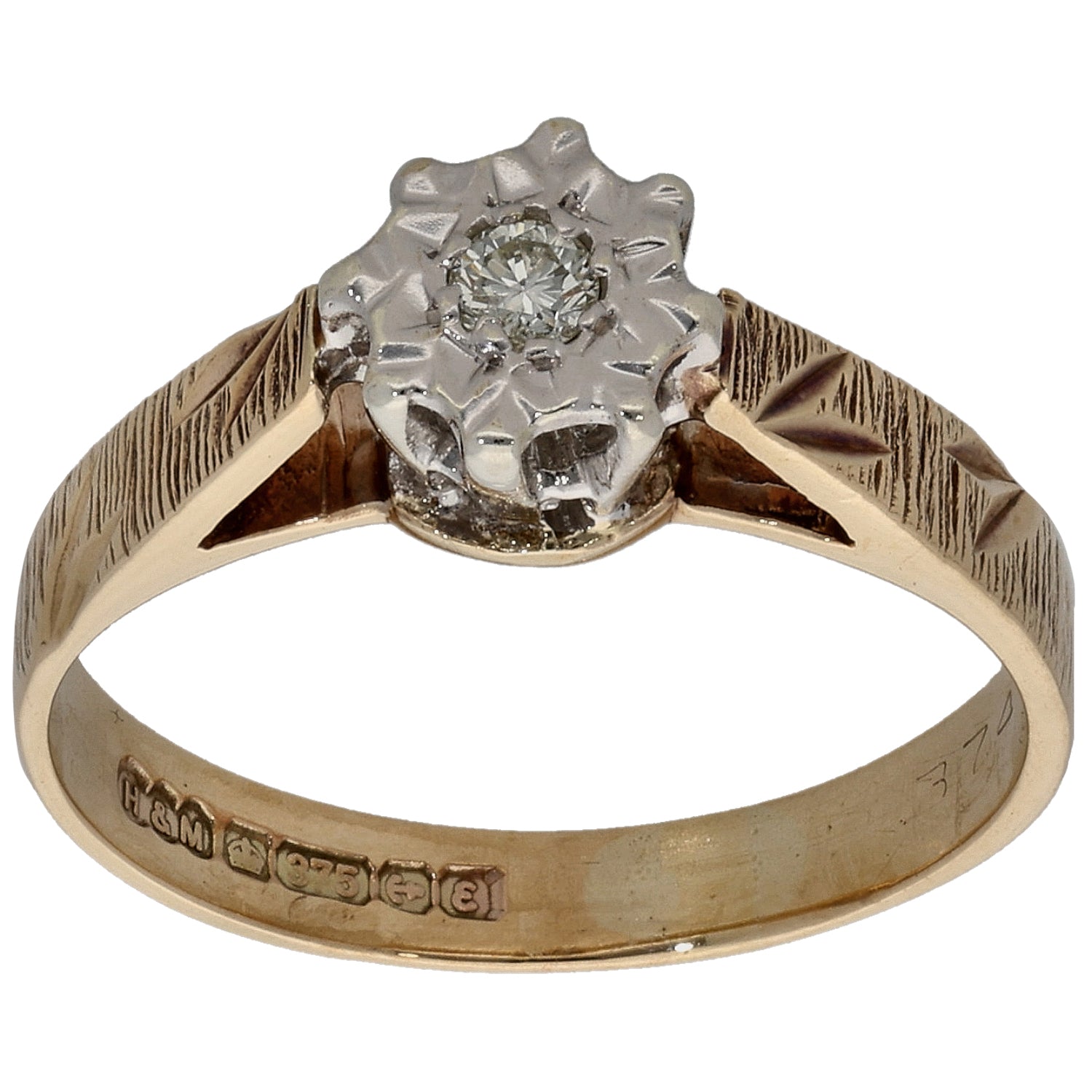 9ct Gold 0.03ct Diamond Solitaire Ring Size L