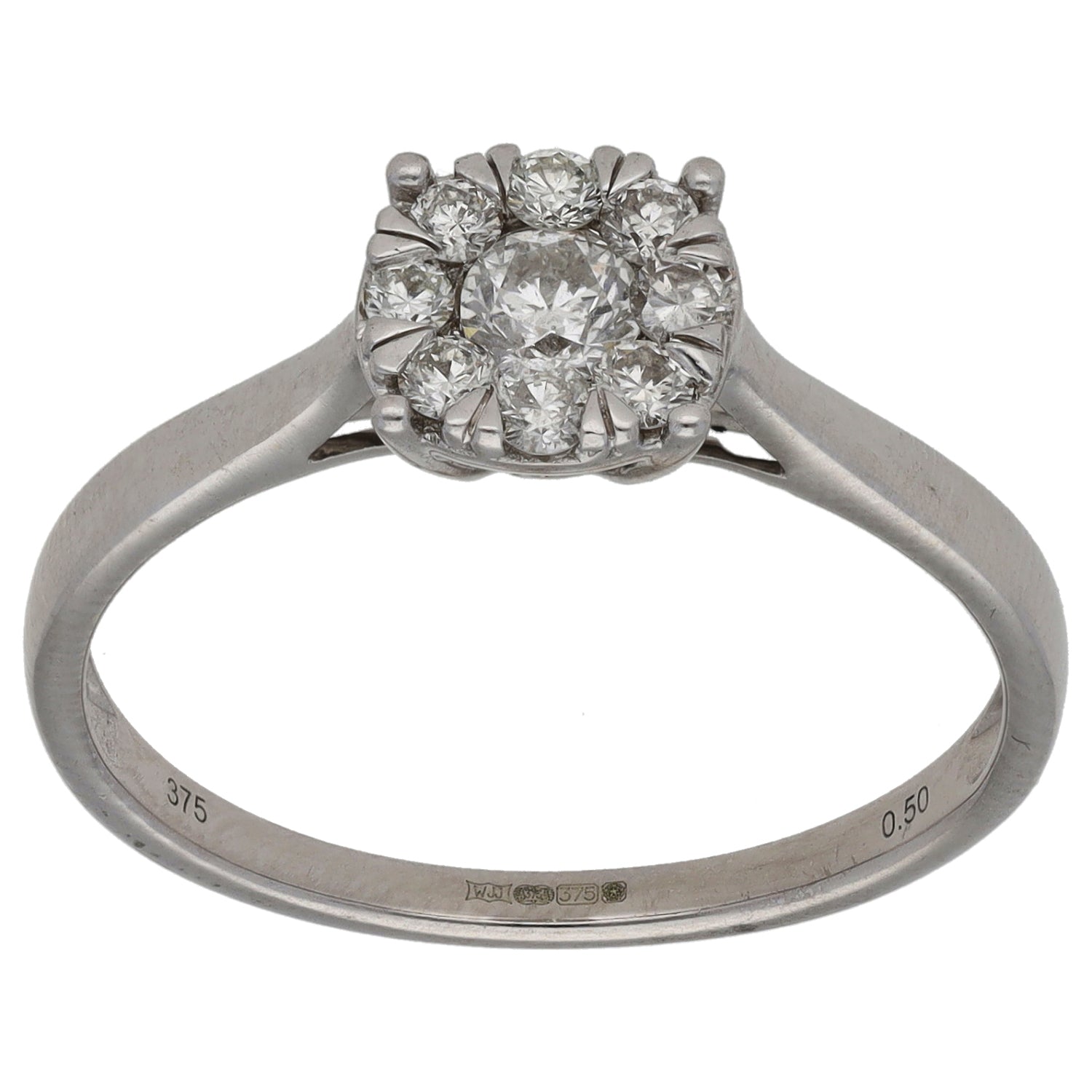 9ct Gold 0.50ct Diamond Cluster Ring Size T