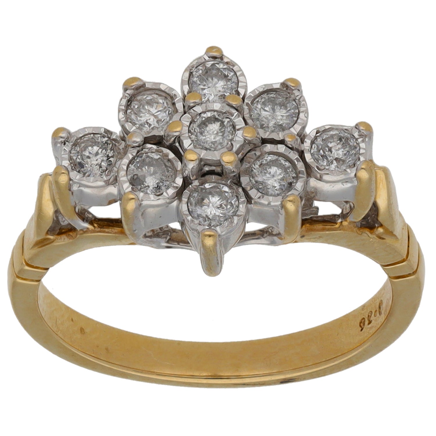 9ct Gold 0.36ct Diamond Cluster Ring Size K