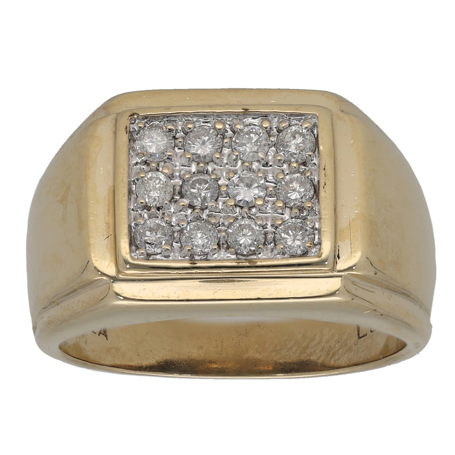 9ct Gold 0.50ct Diamond Patterned Signet Ring Size T