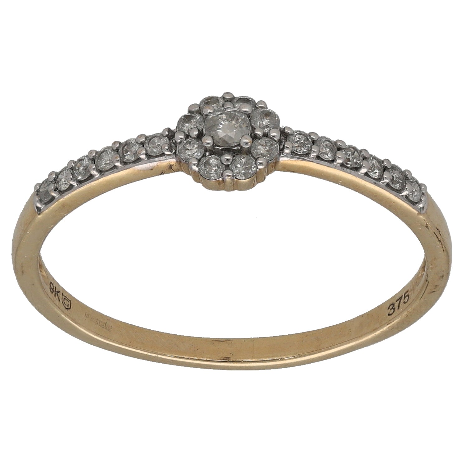 9ct Gold 0.19ct Diamond Cluster Ring Size U