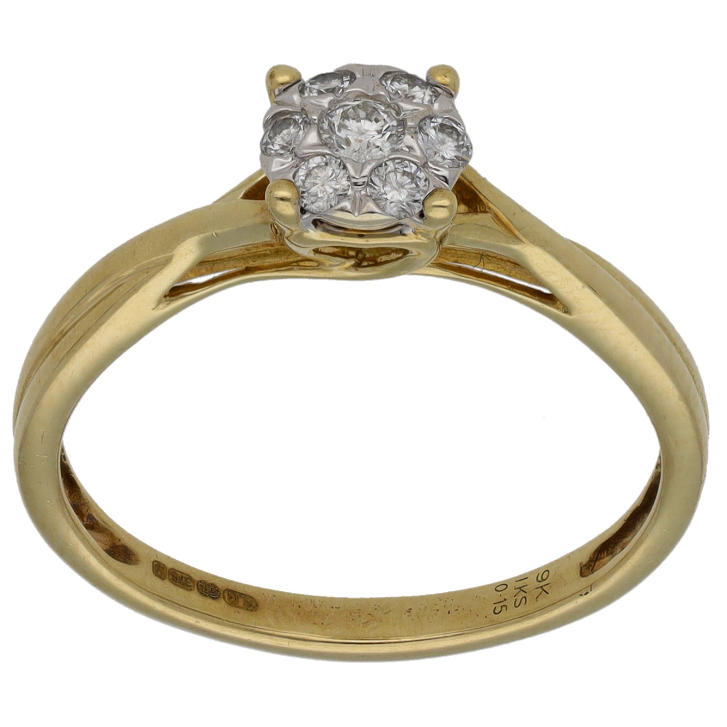 9ct Gold 0.15ct Diamond Cluster Ring Size N