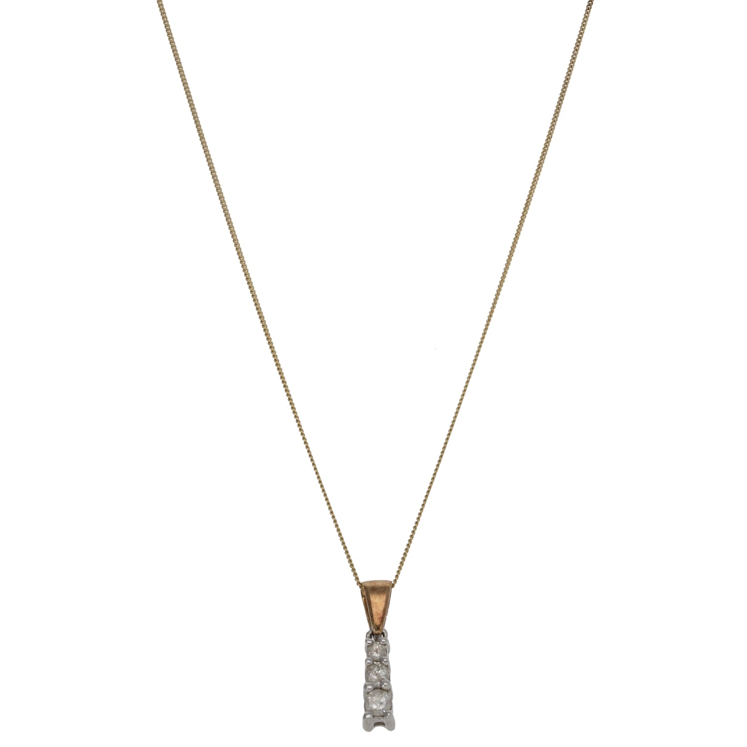 9ct Gold 0.25ct Diamond Three Stone Pendant With Chain
