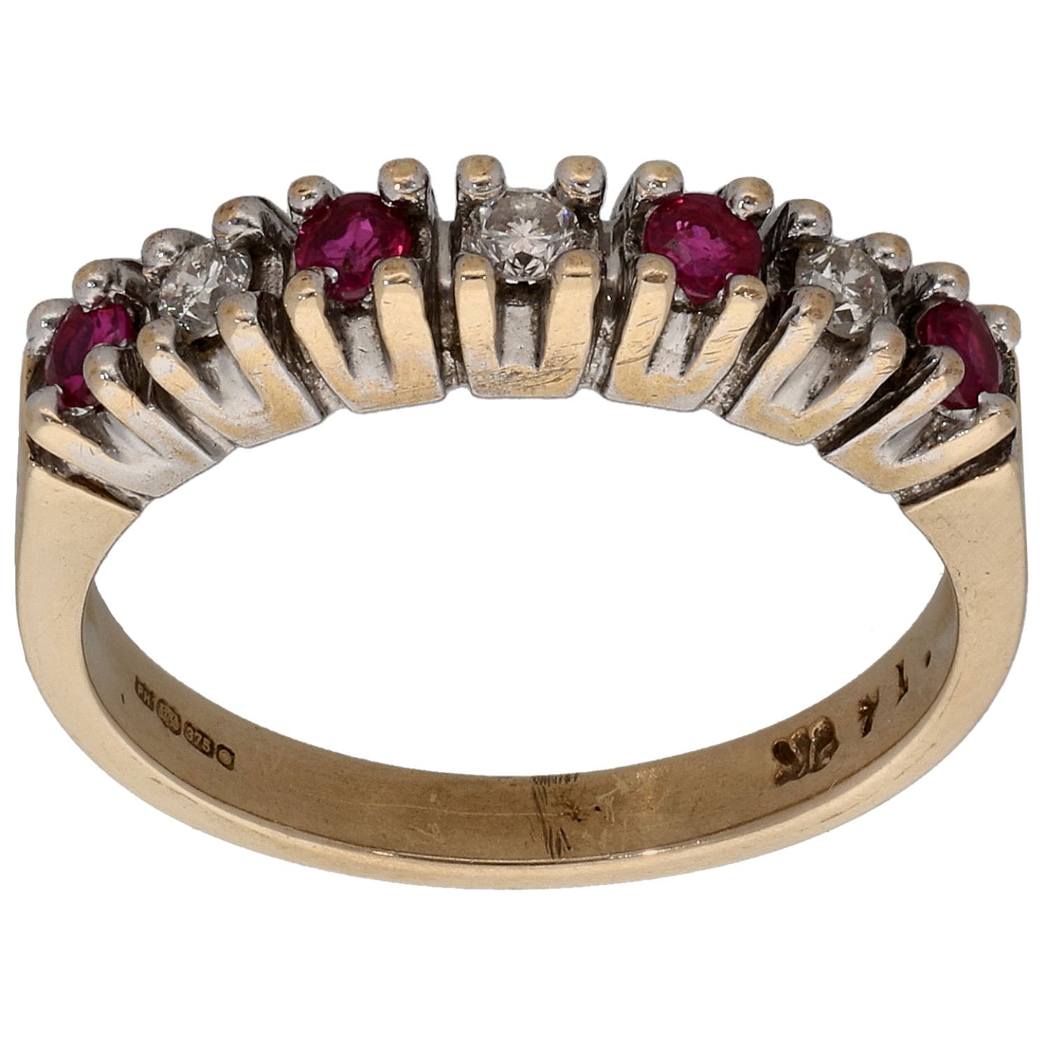 9ct Gold Ruby & 0.14ct Diamond Half Eternity Ring Size M