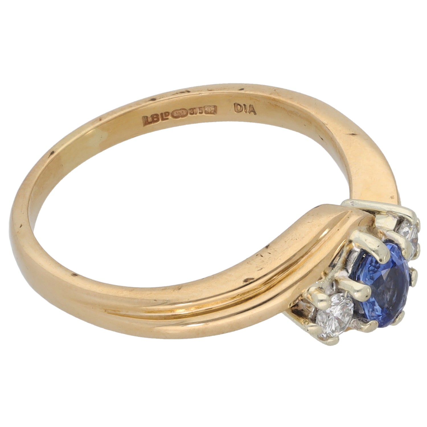9ct Gold 0.14ct Diamond & Sapphire Three Stone Ring Size P