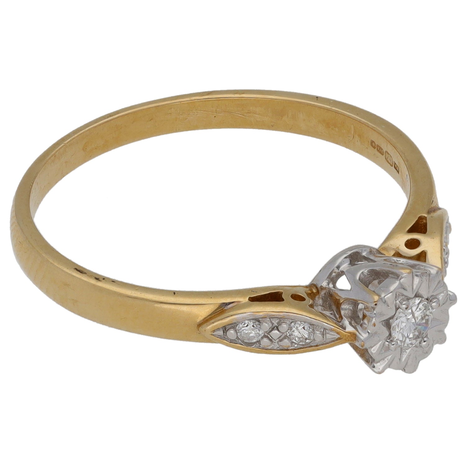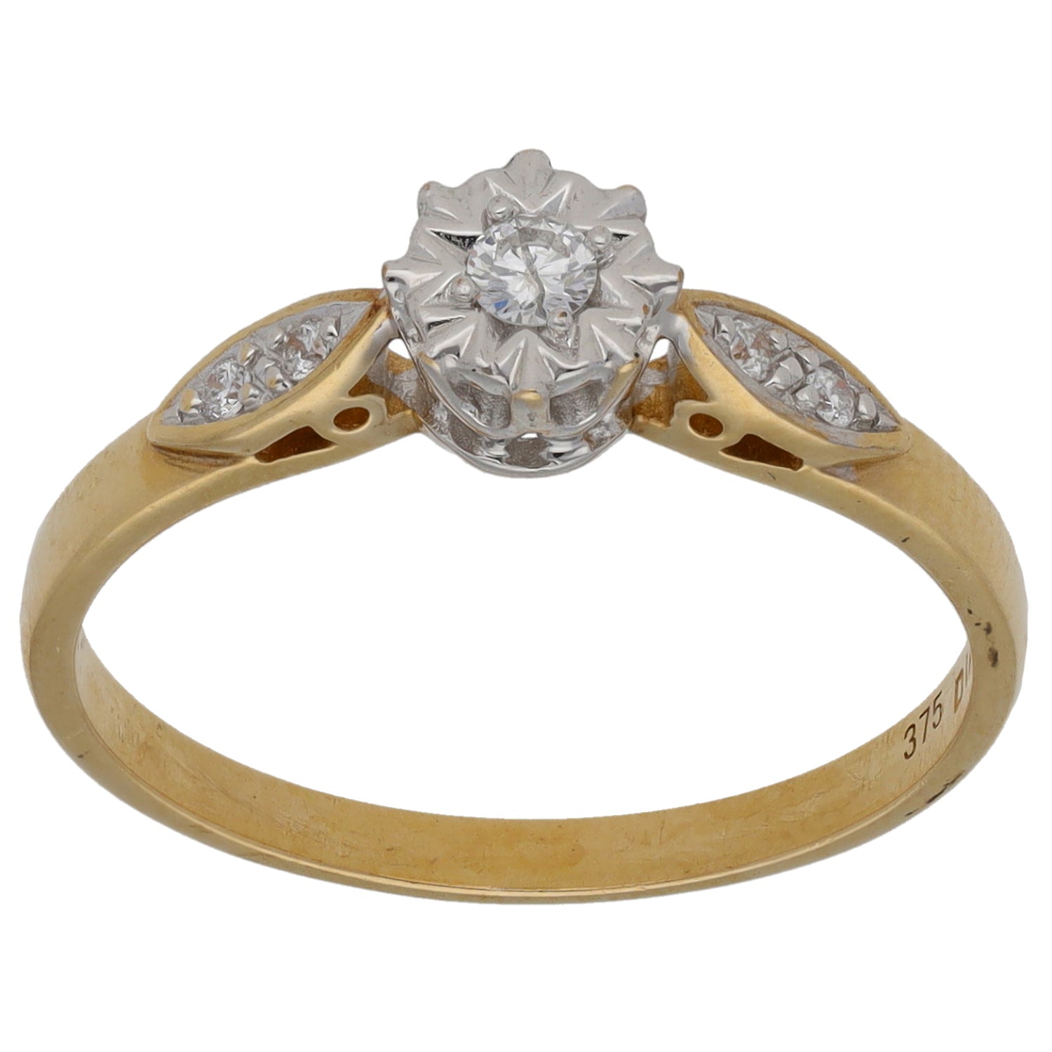 9ct Gold 0.10ct Diamond Solitaire Ring With Accent Stones Size O