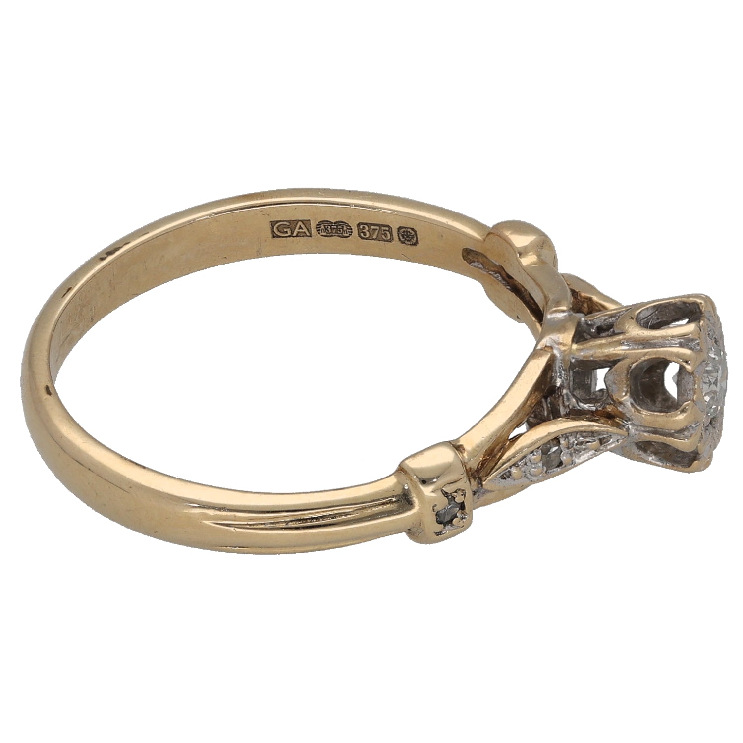 9ct Gold 0.09ct Round Diamond Solitaire Ring With Accent Stones Size N