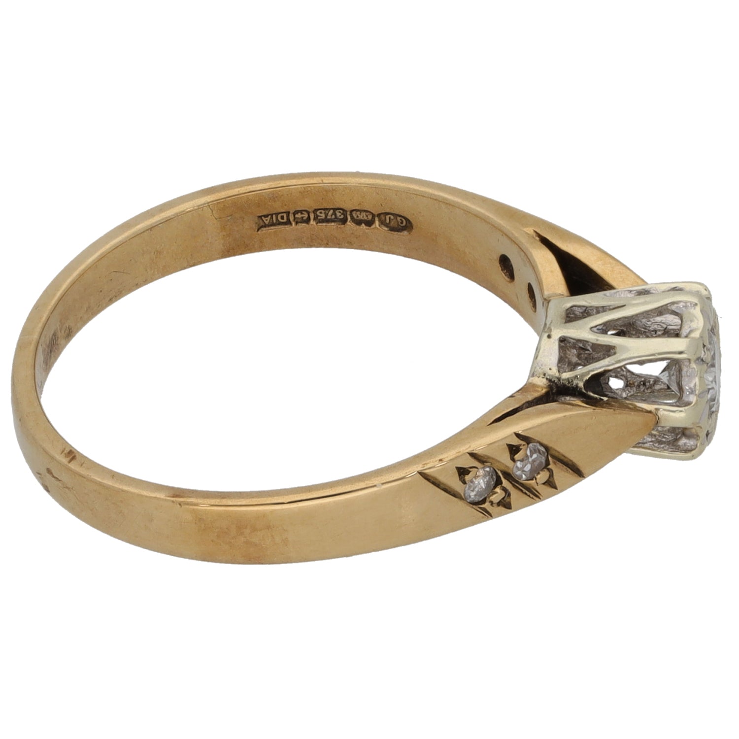 9ct Gold 0.15ct Diamond Solitaire Ring With Accent Stones Size M
