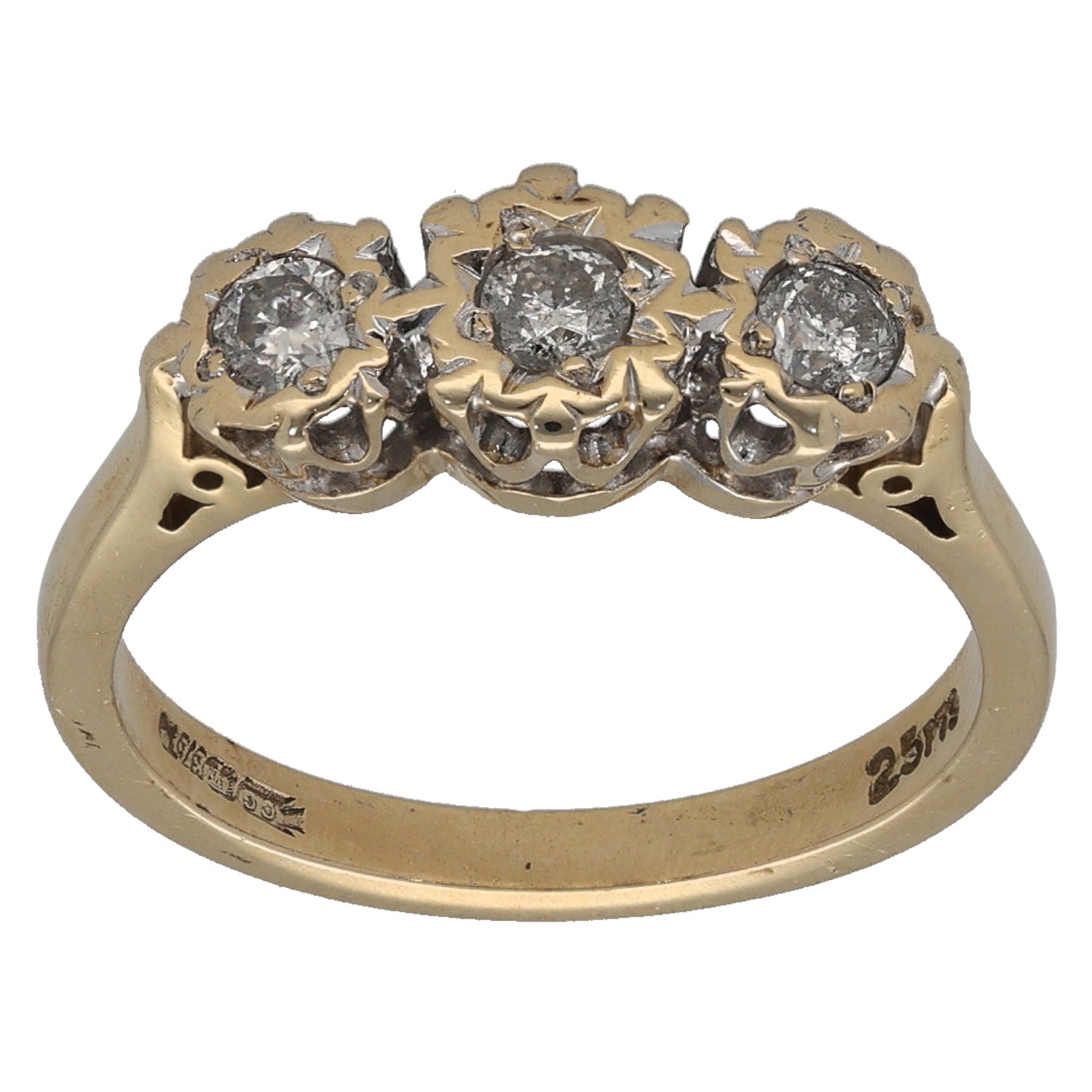 9ct Gold 0.25ct Diamond Trilogy Ring Size K