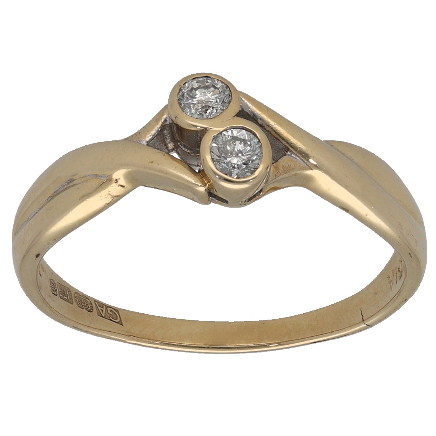 9ct Gold 0.15ct Diamond Two Stone Ring Size Q