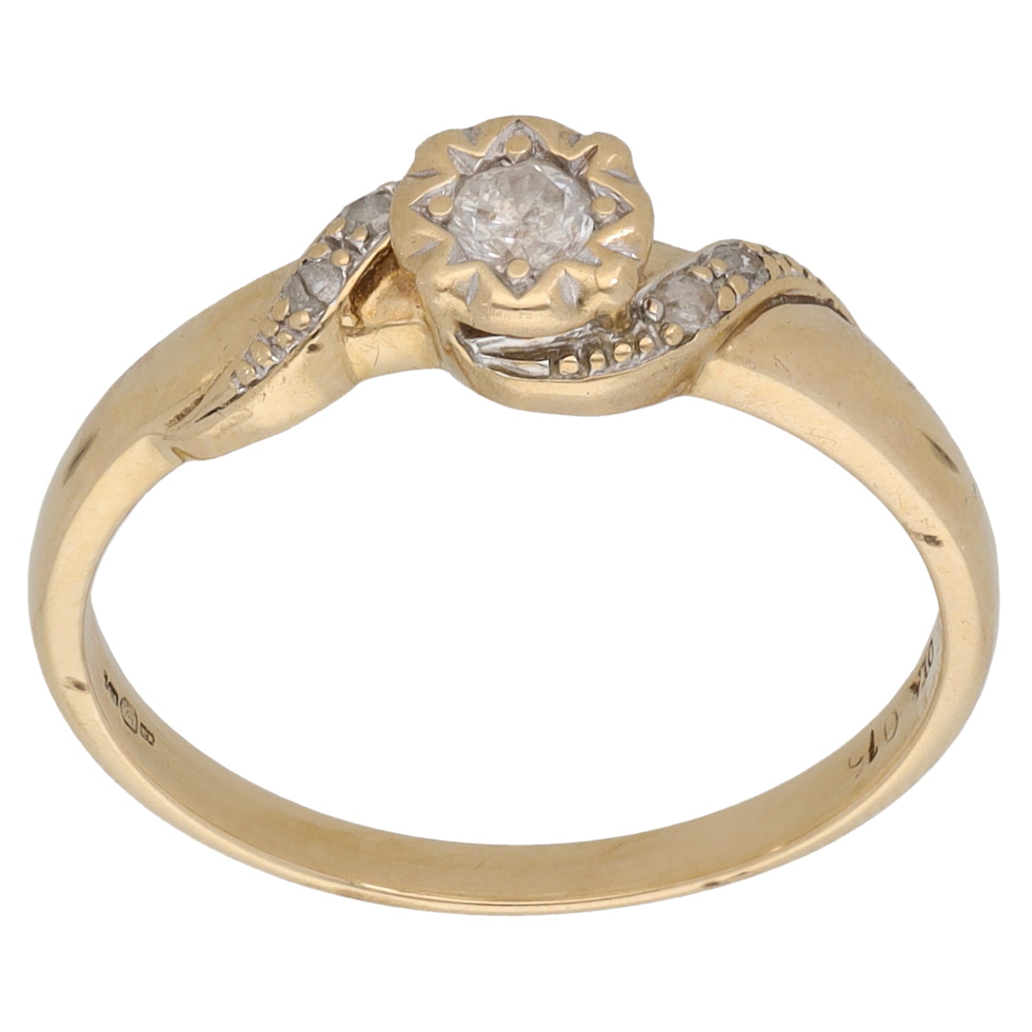 9ct Gold 0.15ct Diamond Solitaire Ring With Accent Stones Size P