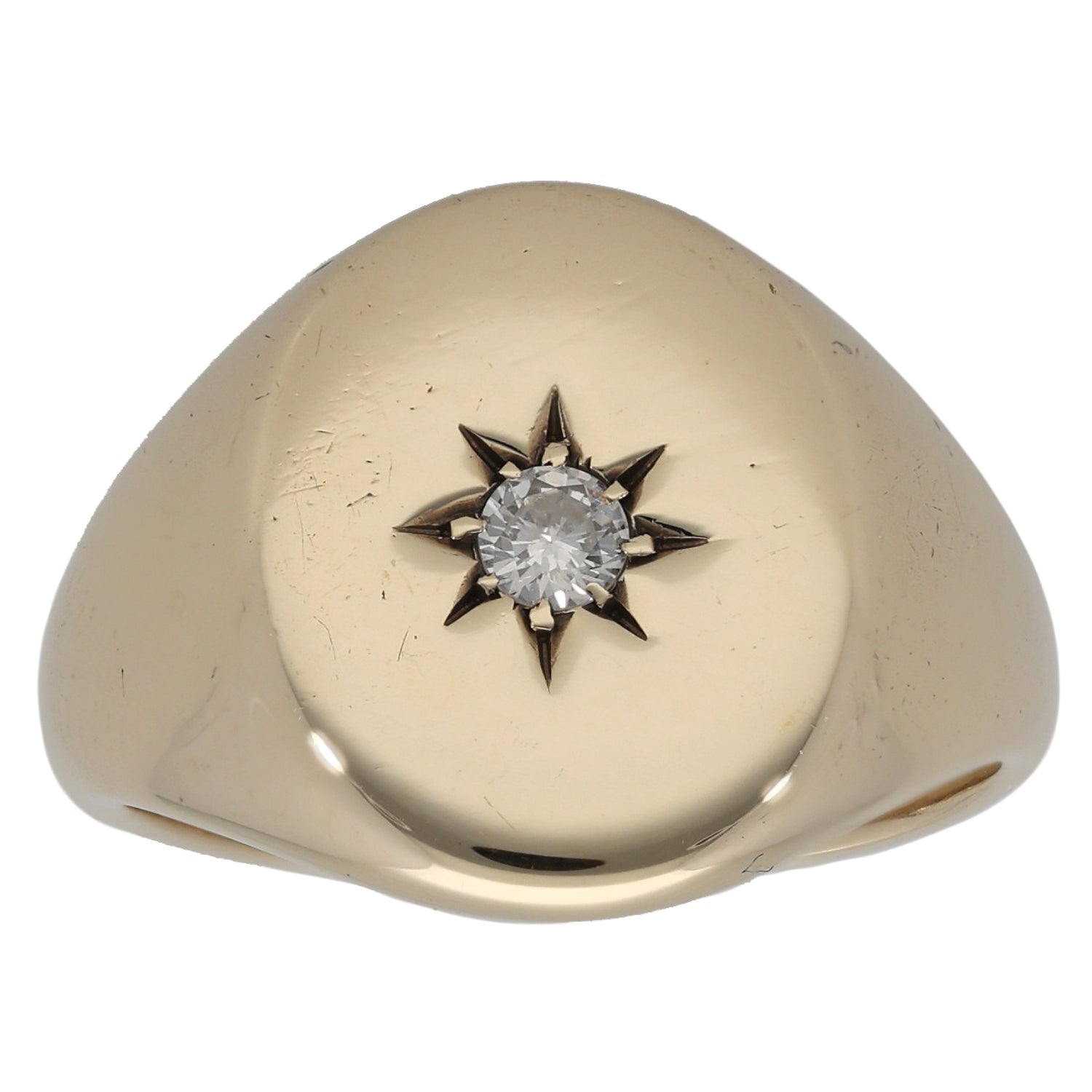9ct Gold 0.10ct Diamond Signet Ring Size N