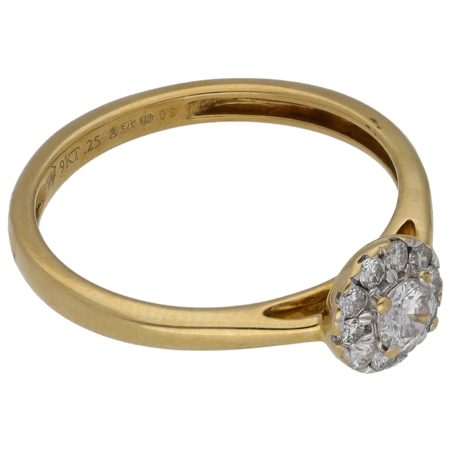 9ct Gold 0.25ct Diamond Cluster Ring Size L