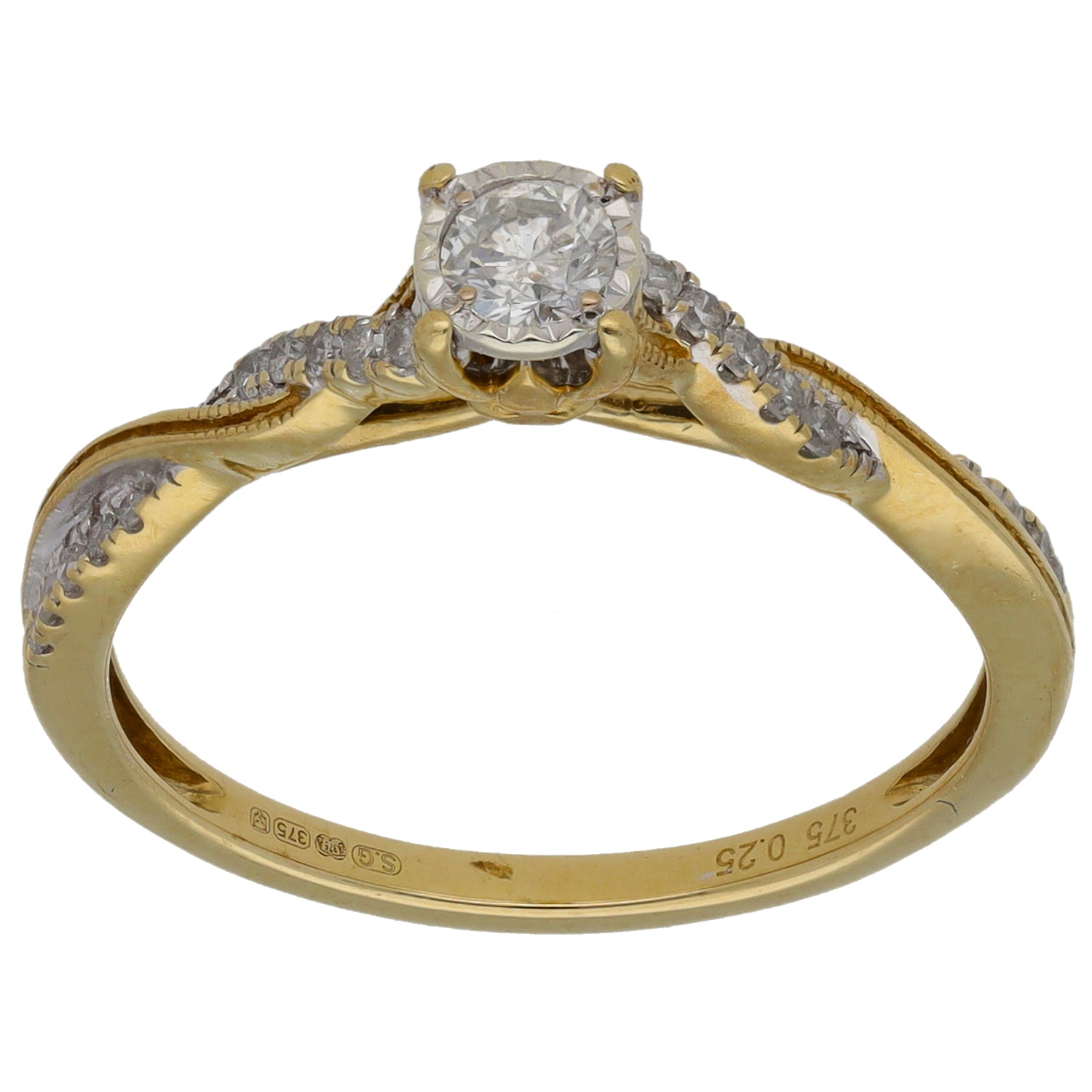 9ct Gold 0.25ct Diamond Solitaire Ring With Accent Stones Size N