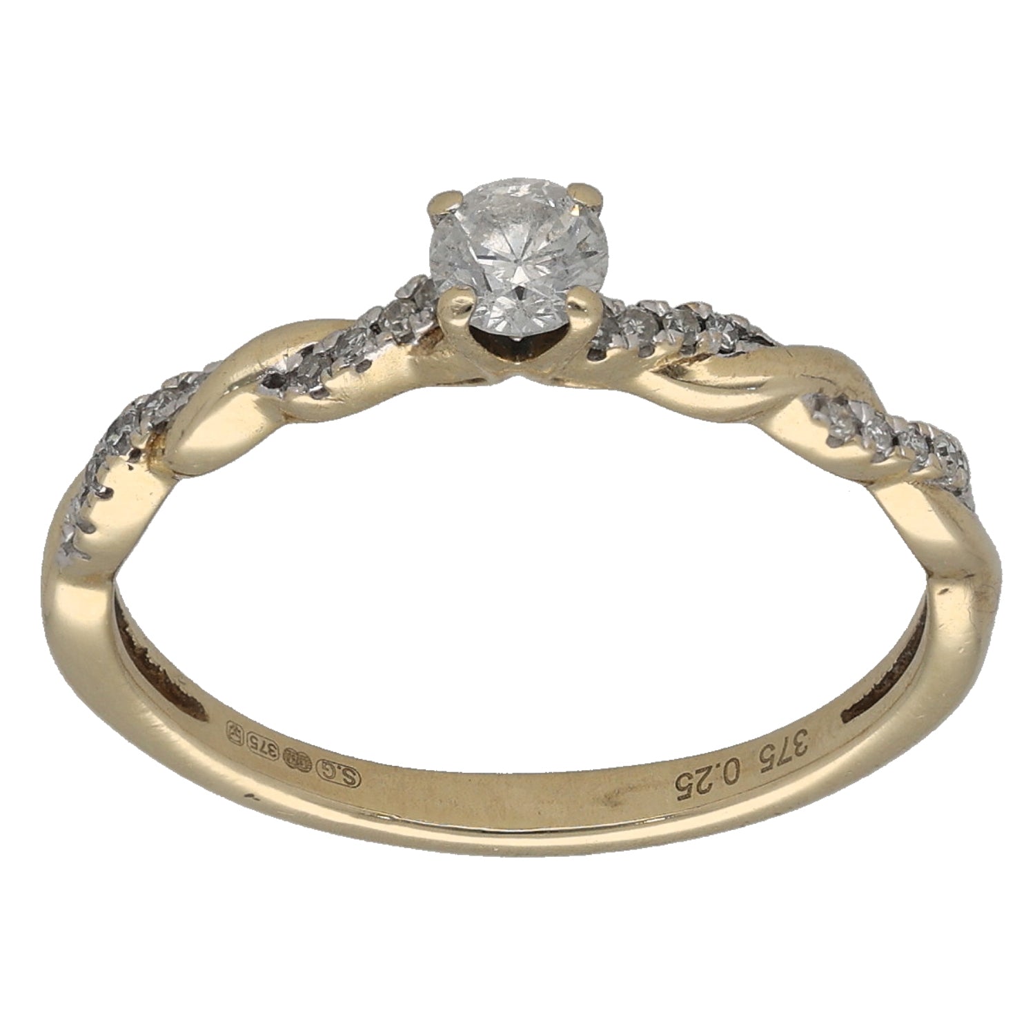 9ct Gold 0.25ct Diamond Solitaire Ring With Accent Stones Size N