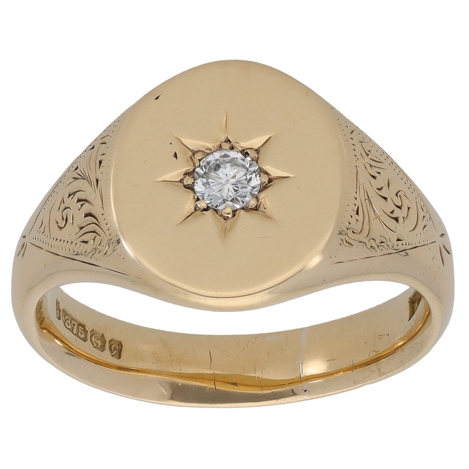 9ct Gold 0.20ct Diamond Patterned Signet Ring Size V