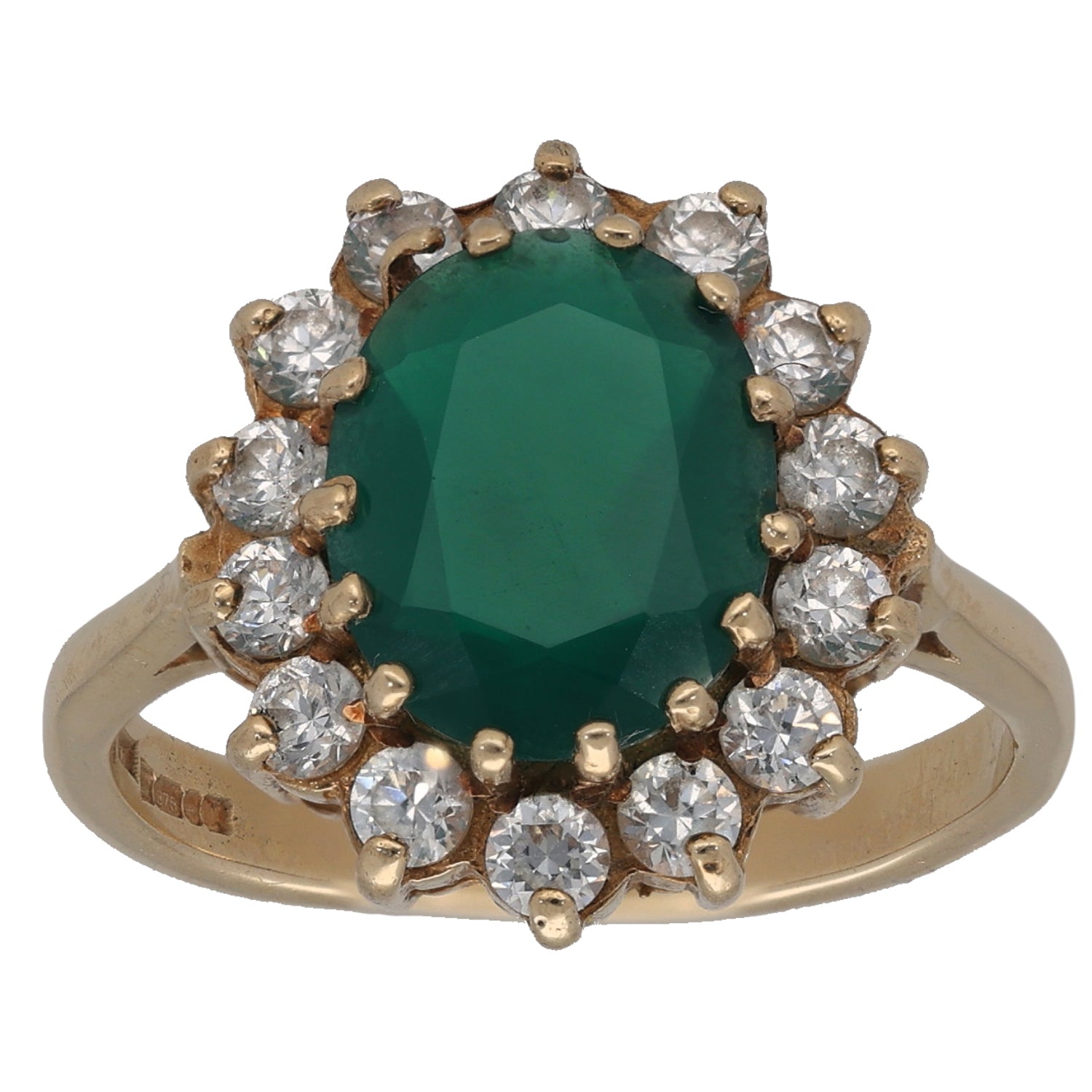 9ct Gold Agate & Cubic Zirconia Dress/Cocktail Ring Size Q