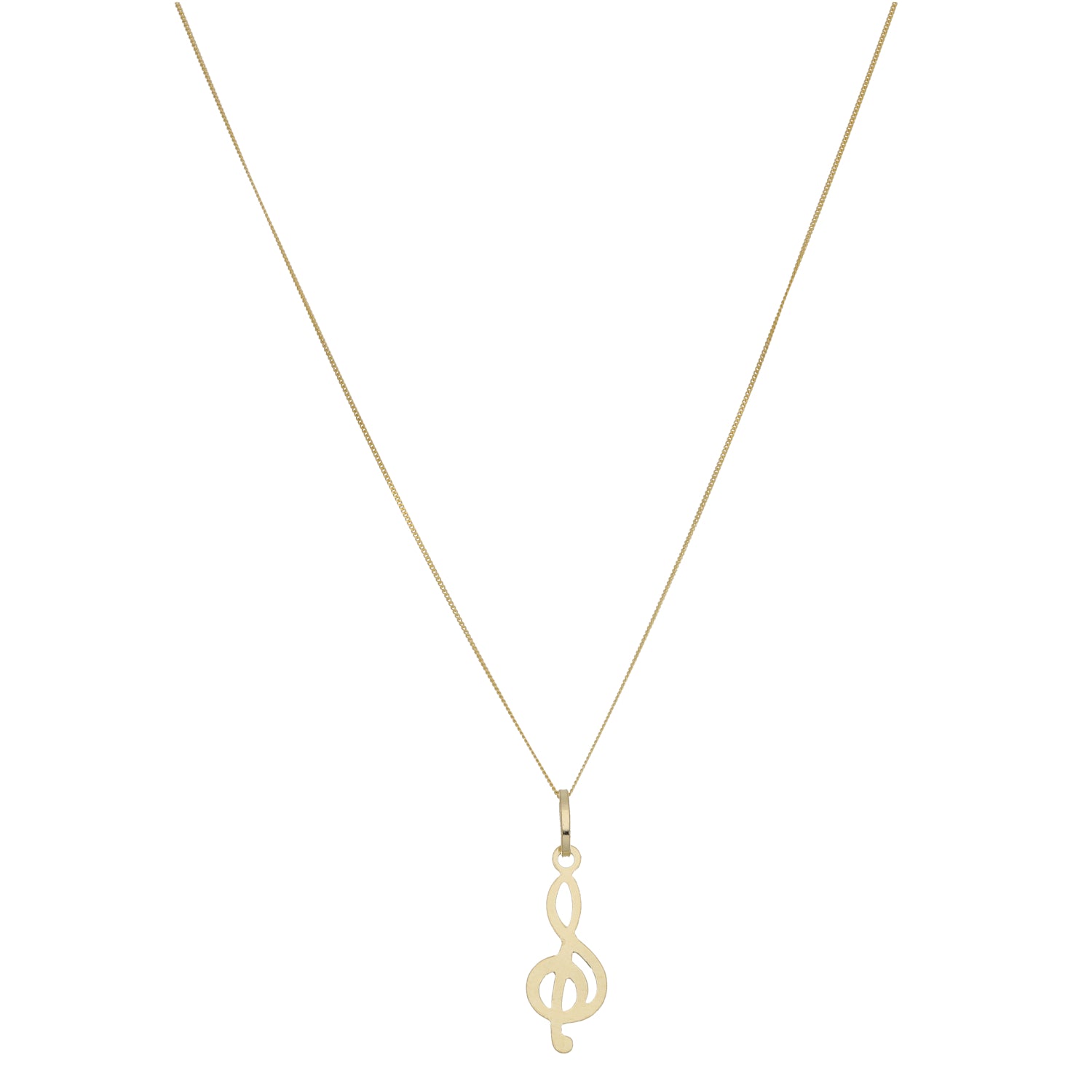 New 9ct Gold Trebel Clef Pendant With Chain 18"